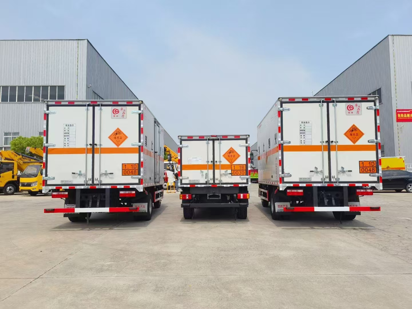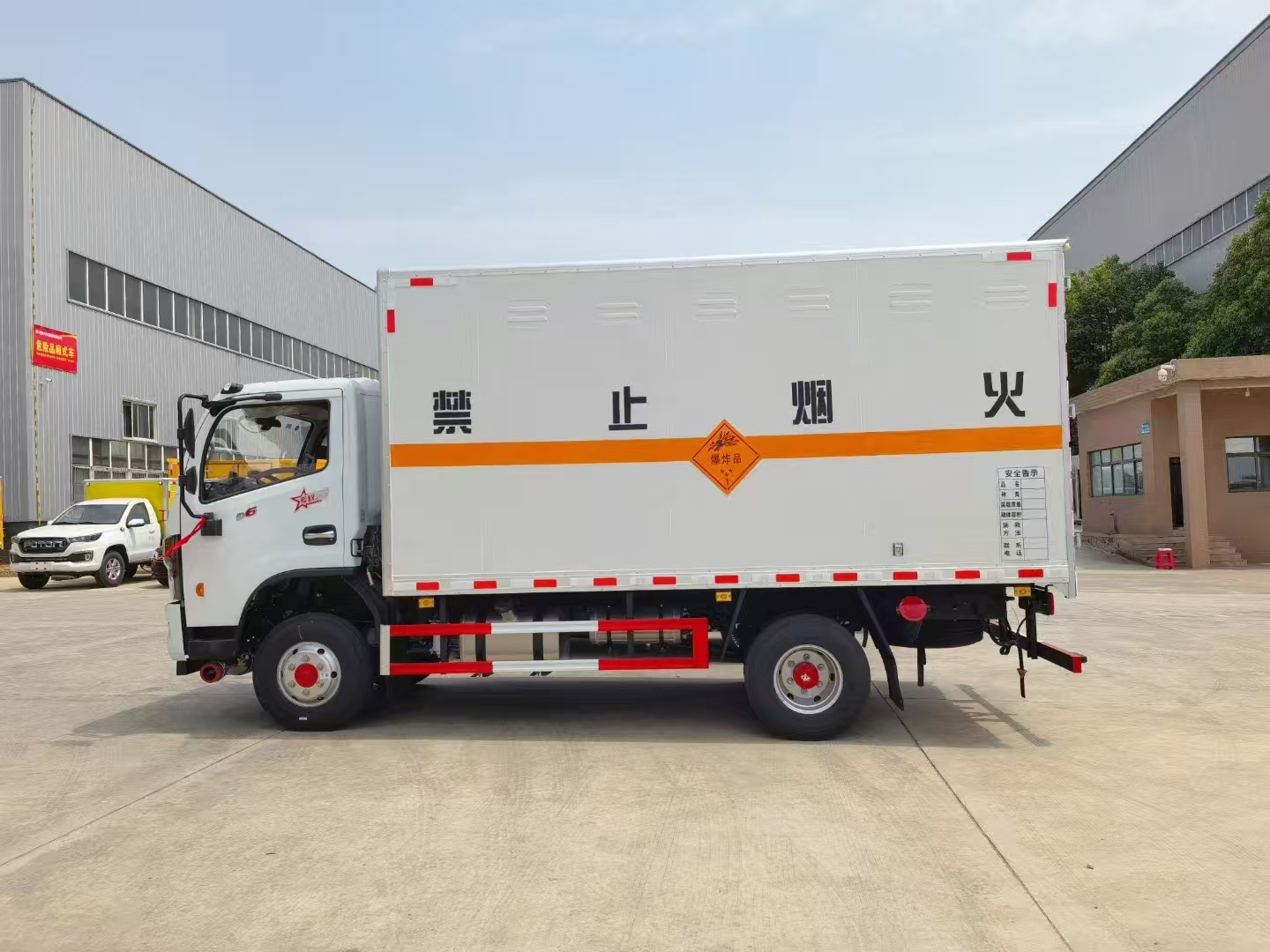 1:運輸炸藥:兩臺東風股份小黃牌4.1米爆破車,玉柴140馬力,該車動力極其適合礦區山路,前排氣管離地高。2:運輸雷管:福田大將軍皮卡爆破,4驅,2.5排量,全越野胎,前排氣管離地高,額載大。