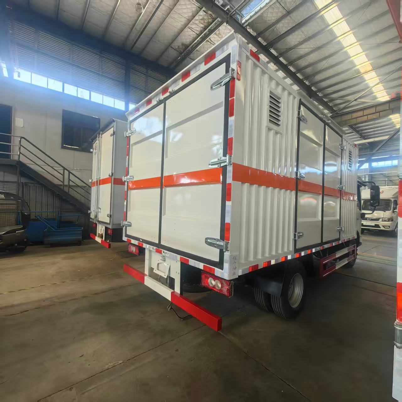 無論是運輸易燃液體、壓縮氣體,還是腐蝕性物品,福田奧鈴172馬力危險品車均可根據不同貨物特性,提供定制化上裝方案,涵蓋罐式、廂式等多種車型,滿足化工、能源、醫藥等行業的多樣化運輸需求。同時,車輛駕駛室空間寬敞,座椅舒適性高,配備便捷的操控按鍵與儲物空間,為長途駕駛的司機提供舒適的駕乘環境,緩解疲勞,提升運輸安全性。