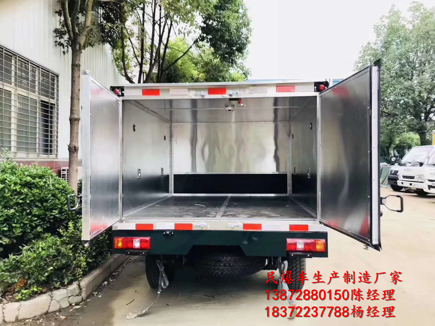 慶鈴五十鈴皮卡爆破器材運輸車,采用慶鈴五十鈴皮卡單排駕駛室底盤,整車帶有中控門鎖、電動門窗、多功能方向盤、額載500㎏,四驅,五十鈴130馬力發動機,動力足,駕駛舒適,廂體廠2.1米,廂體外飾冷板、內飾鋁板、中間為防阻燃泡沫、廂內安裝臥環、煙霧報警器、防盜報警器、右邊開側門、后雙開門、帶拖地靜電帶,其它均按廠標組織生產。