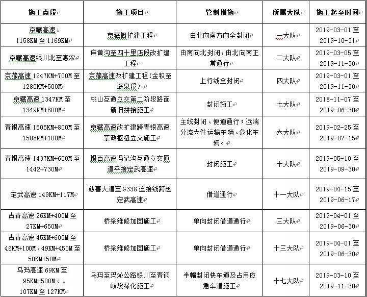 根據寧夏交警消息,寧夏境內以下高速路段正在施工,請注意繞行。