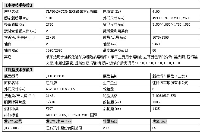 1)江鈴國六防爆汽車運輸車