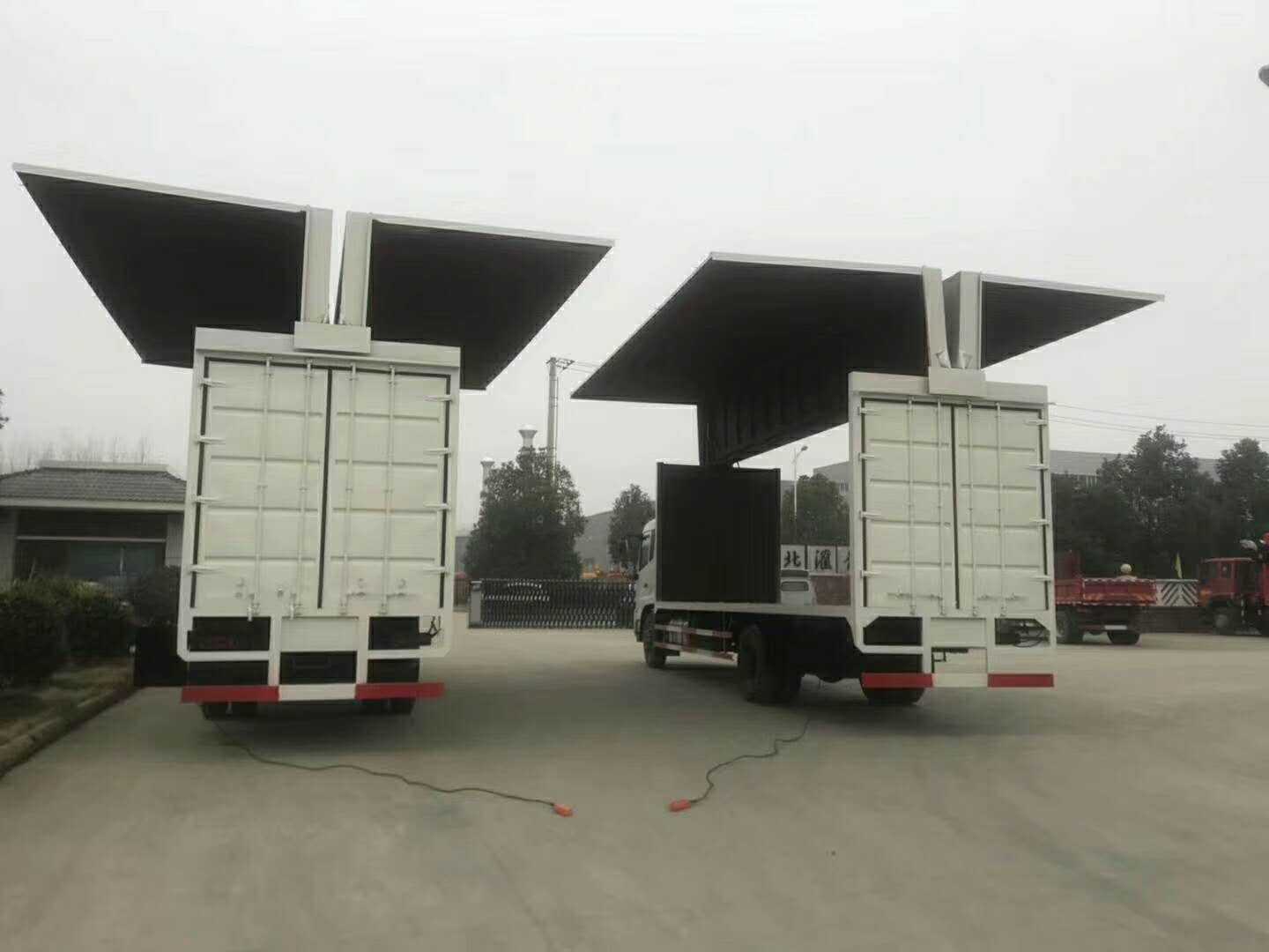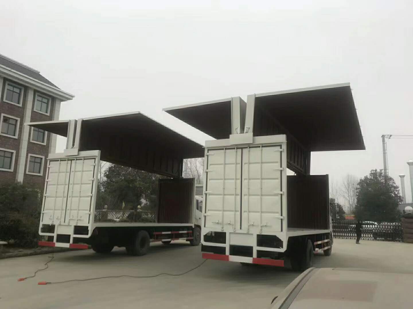 1.飛翼車可形成敞開式車廂。便于機械集裝化裝卸貨物,提高裝卸效率。12m長普通廂式裝卸貨約需1.5-2小時,展翼廂式車約需20-30分鐘,裝卸貨物可節(jié)省1-1.5小時,展翼車特別適合中短距離運輸,可成倍提高效率。