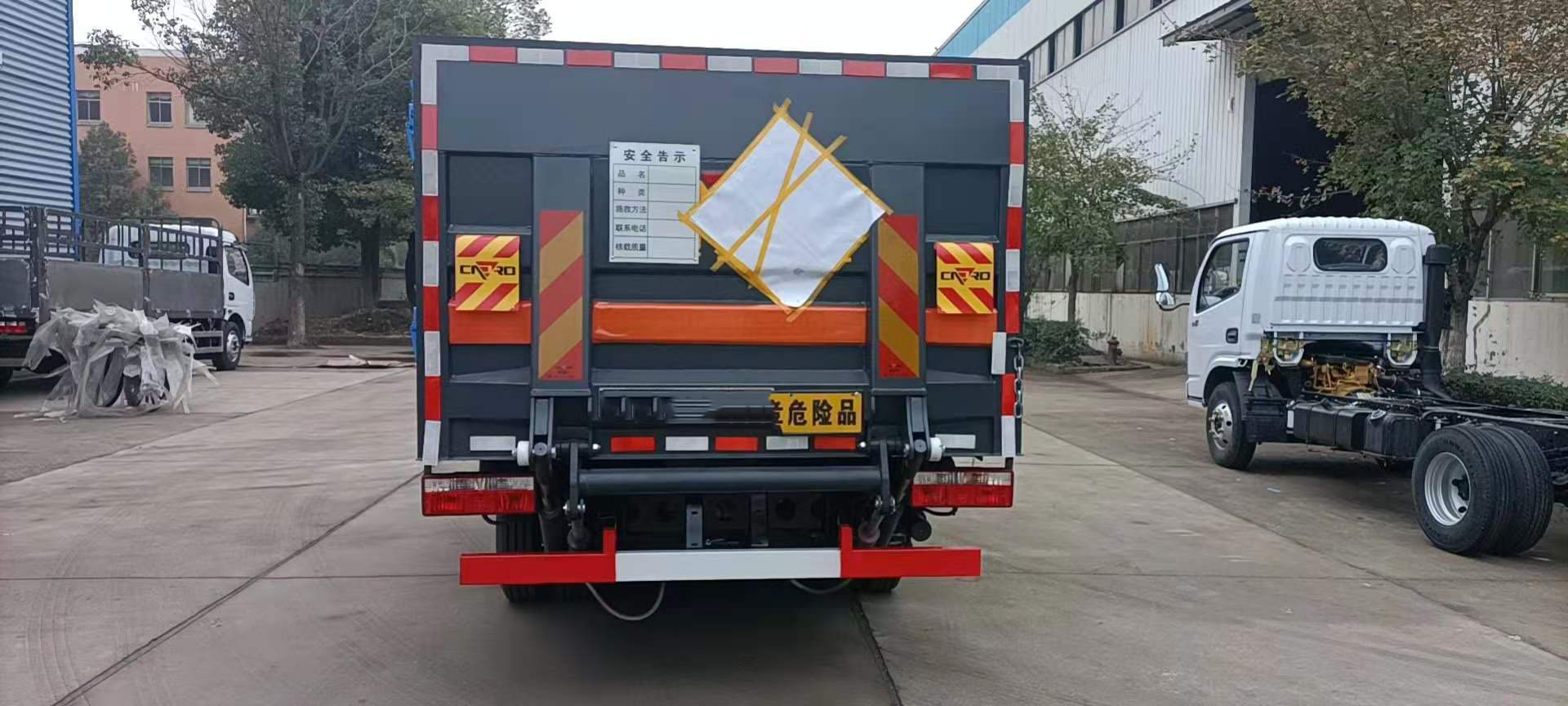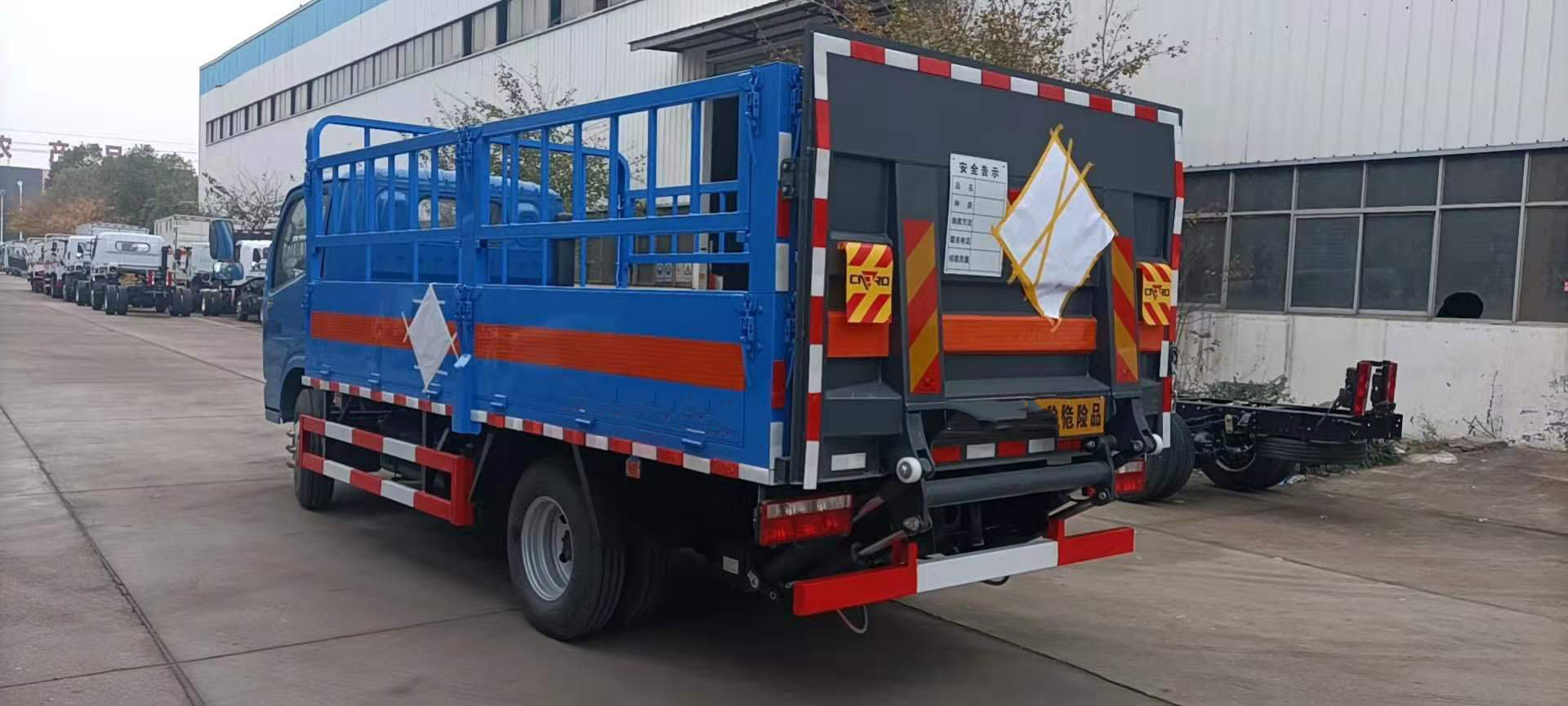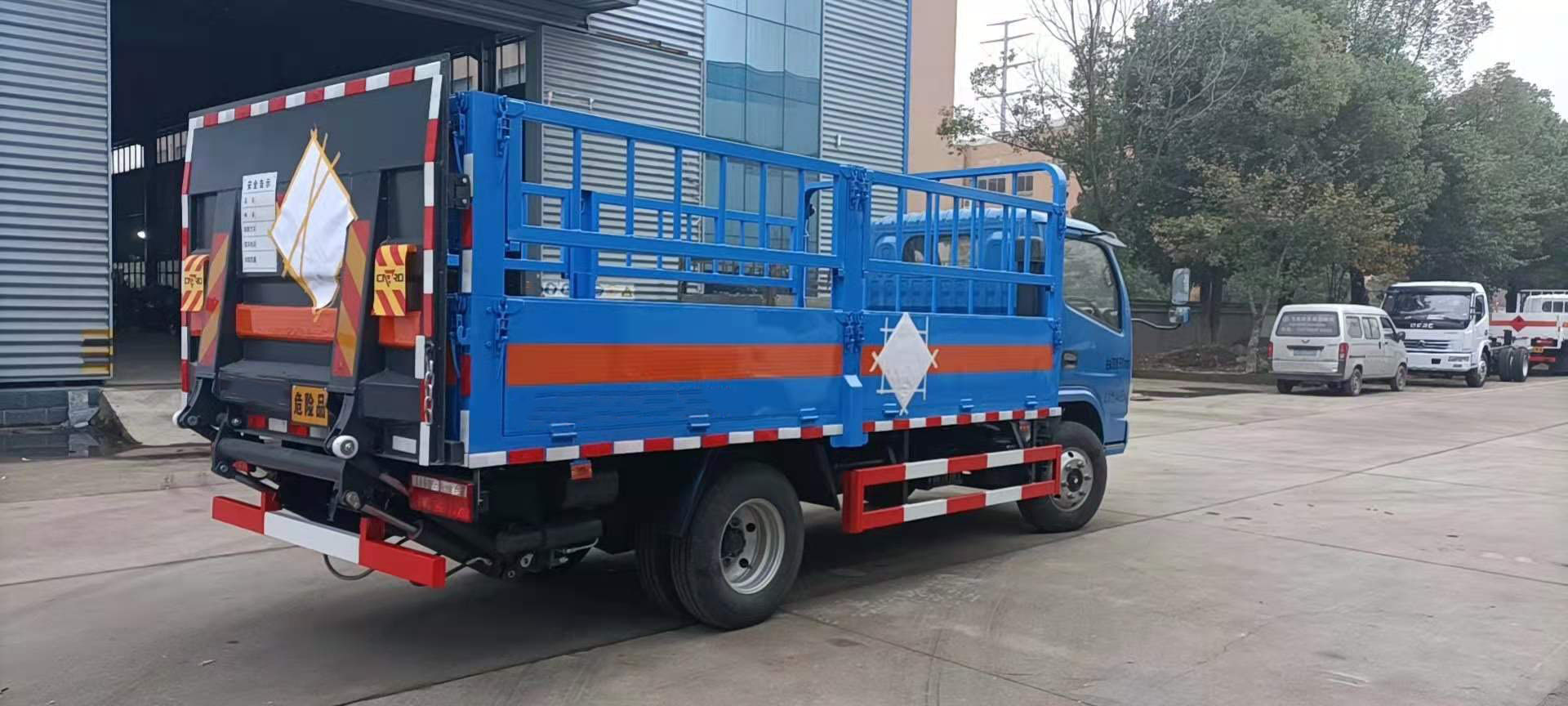東風4米2黃牌帶液壓尾板氣瓶車后部選裝液壓尾板,液壓尾板收起水平長度280mm,尾板重量為350kg,該車用于運輸具有獨立容器(瓶)包裝的易燃氣體或運輸具有獨立容器(瓶)包裝的非易燃無毒氣體,類項號2.1,2.2.選掛2.1類易燃氣體警示牌或2.2類非易燃無毒氣體警示牌.