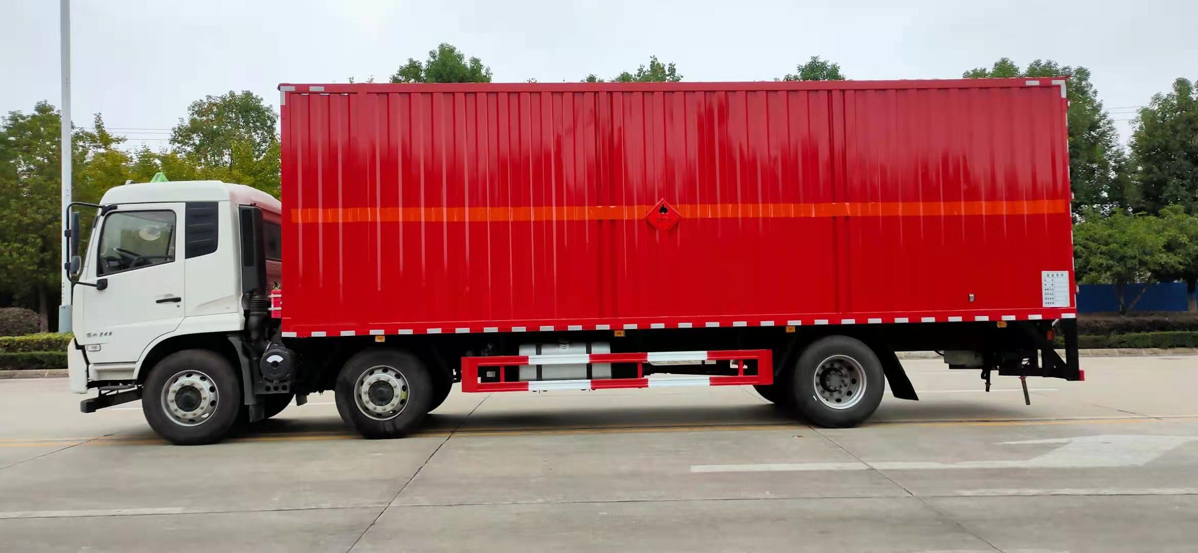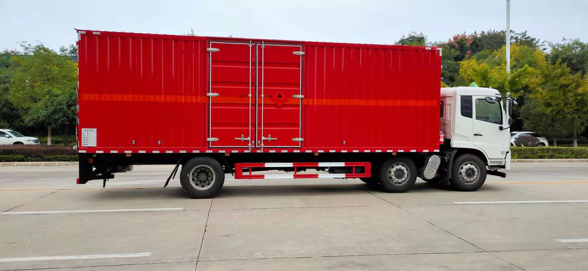 東風(fēng)天錦三軸9米易燃液體廂式運(yùn)輸車嚴(yán)格按照公告尺寸制作,外板采用 1mm 厚冷軋板有一次性成型的百葉窗,內(nèi)飾為導(dǎo)電性能良好的鋁板有透氣孔,內(nèi)襯為矩形管骨架牢靠穩(wěn)定,內(nèi)部填充為透氣防潮阻燃的擠塑板,四種材料經(jīng)現(xiàn)代工藝復(fù)合而成,廂體外部上下鋁合金型材包邊,底板和車廂前下部鋪橡膠皮,后門雙開,右側(cè)中部兩個(gè)雙開門,內(nèi)部有固定貨物的臥環(huán),車輛外部有靜電帶、滅火器、防火罩,車廂內(nèi)安裝煙霧報(bào)警器和門防盜報(bào)警器,嚴(yán)格按照國家危險(xiǎn)品相關(guān)法規(guī)張貼。