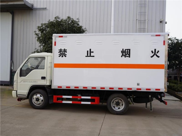 福田小卡危險品車廂體為雙層金屬骨架結構,外冷軋鋼板內飾鋁板,內壁采用鋁合金板蒙面,夾層為隔熱阻燃材料填充,廂體內部做通風窗口,廂體內部做防靜電處理,廂體底部鋪導靜電膠板,車輛副梁配備導靜電帶,廂體內襯壁裝單排臥環,廂體內頂部安裝氣體報警器,廂體安裝防盜報警器,隨車配備手提滅火器,危險品三角頂燈,防護帽等備,嚴格按照國家危險品法規進行易燃氣體標識粘貼等。隨車提供資料:機動車上戶發票,整車合格證,底盤合格證,隨車工具,服務手冊,保修手冊。