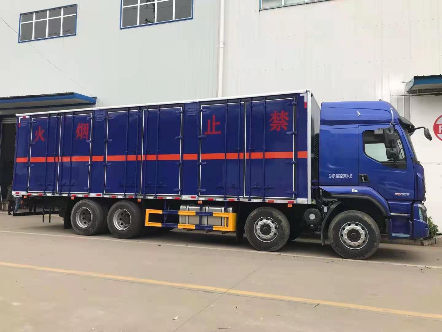 柳汽乘龍前四后八帶三開側門危險品車采用柳汽乘龍危險品車底盤,H5駕駛室,YC6A290-50發動機,9JS119TA變速箱,Ф430離合,2*5.5T前橋,FS160后橋,282(8)車架,600L鋁合金油箱,12R22.5,前機械后氣囊駕駛室懸置、電動液壓翻轉、氣囊減震司機座椅、自動空調、定速巡航系統、ABS、車載終端、第三軸為10t提升橋、中控鎖