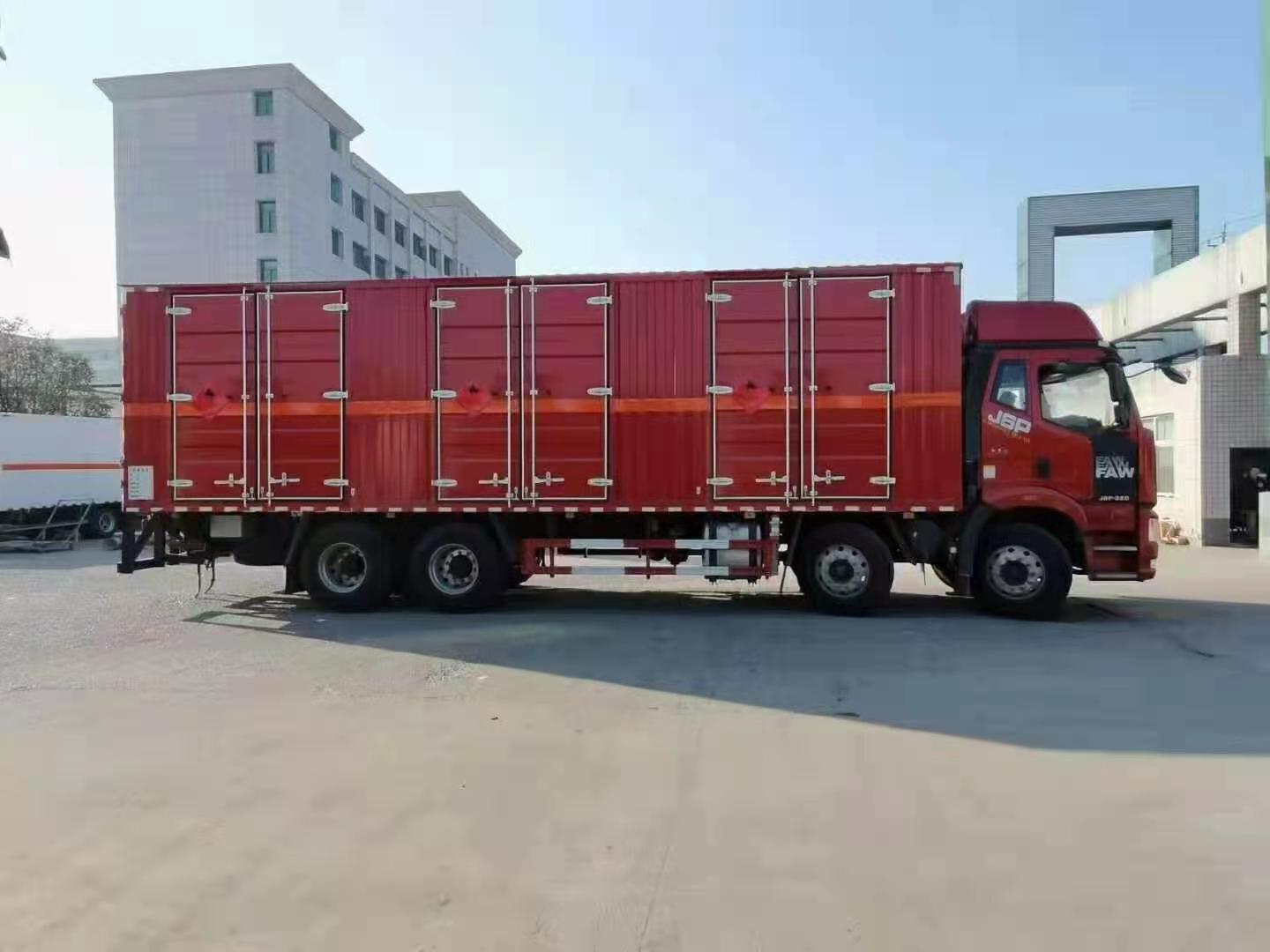 解放國六9米5易燃液體廂式運輸車可選擇開四個側(cè)門,讓您貨物裝卸更方便!根據(jù)客戶要求定制車型,讓您使用更貼近需求!