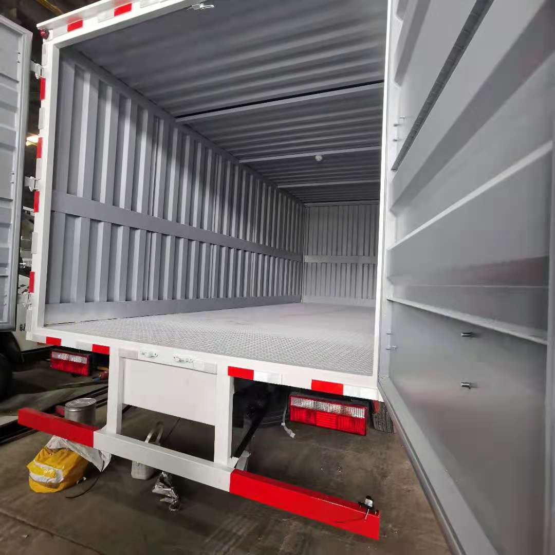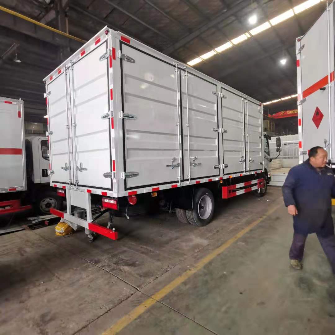 解放5米1國六帶雙開雙側門瓦楞板危險品車采用瓦楞板廂體,廂體外部上下鋁合金型材包邊,底板和車廂前下部鋪橡膠皮,后門雙開,右側帶雙開雙側門,內部有固定貨物的臥環,車輛外部有靜電帶、滅火器、防火罩,車廂內安裝煙霧報警器和門防盜報警器,嚴格按照國家危險品相關法規張貼。