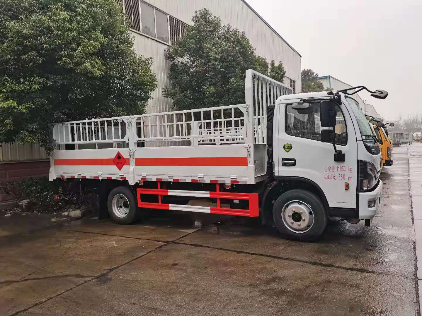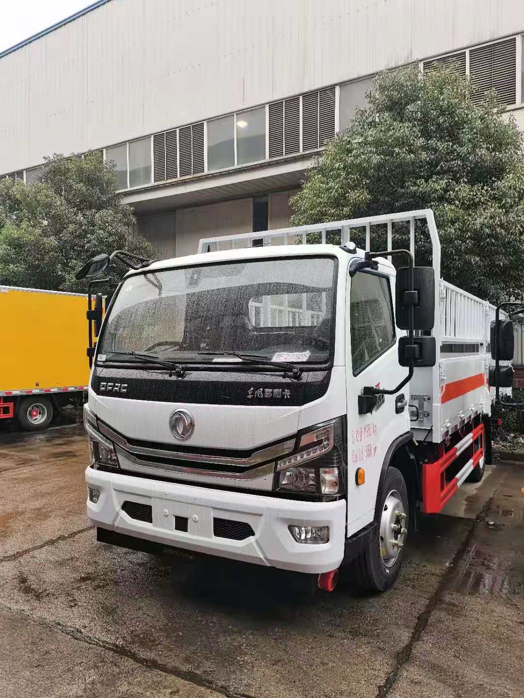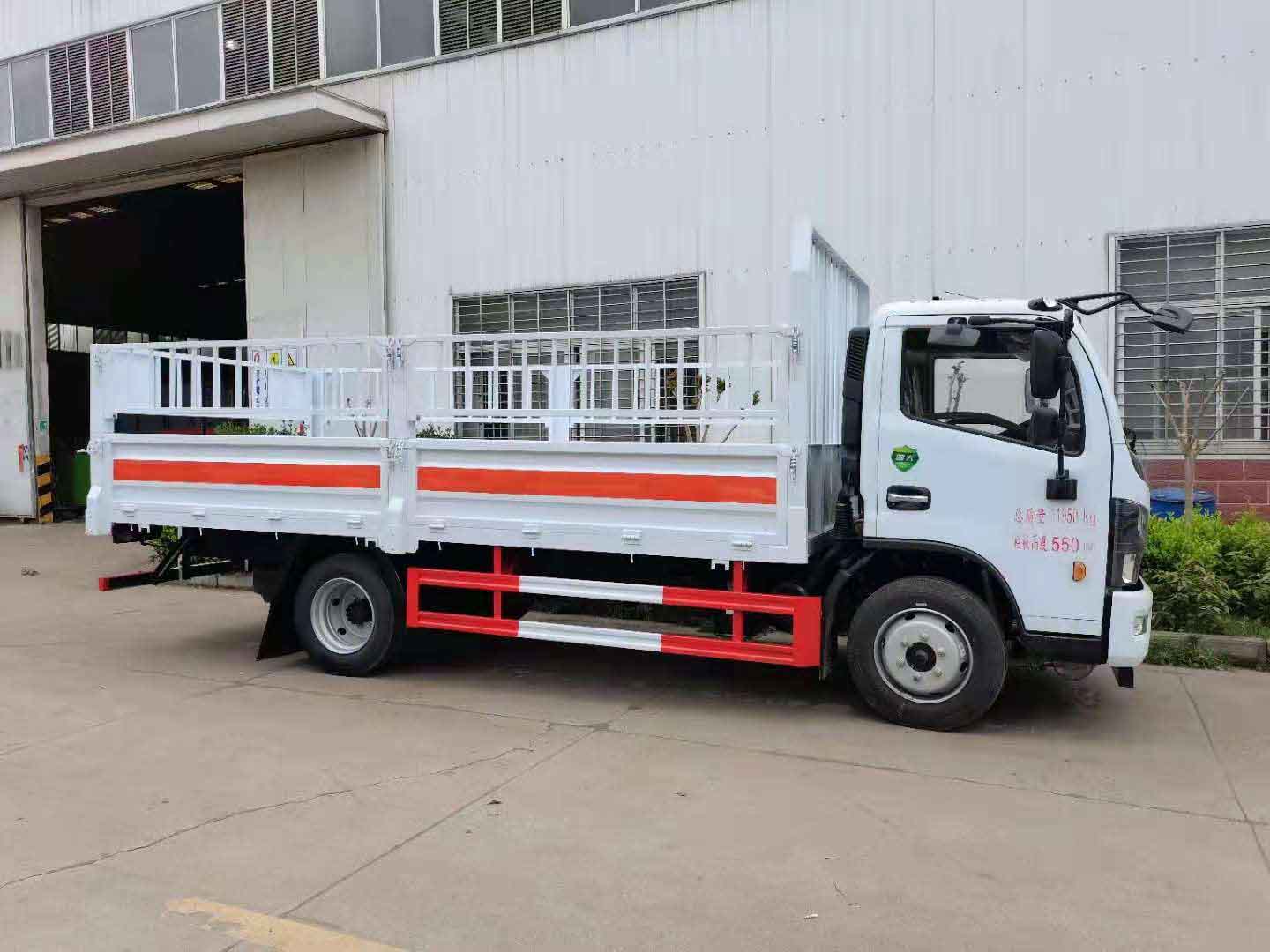 東風大多利卡國六玉柴165馬力氣瓶車東風國六;妆P。底盤型號:EQ1125SJ8CDCWXP。,玉柴165馬力,前輪碟剎,ABS,限速器,排氣制動,245/70R19.5 16PR 真空胎7條,前輪防爆胎,空調(diào),助力,排氣管前置,斷氣剎。電動門窗中控鎖,多功能方向盤。整車尺寸:7100×2500×2800。廂體尺寸:5200×2400×550。龍門架為瓦楞結(jié)構(gòu),廂體為瓦楞板。生產(chǎn)工藝采用4mm底板,上鋪靜電膠皮,高550mm的墻板。配備滅火器,三角頂燈,靜電拖帶等,嚴格按照國家危險品法規(guī)進行“易燃氣體”標識粘貼等。