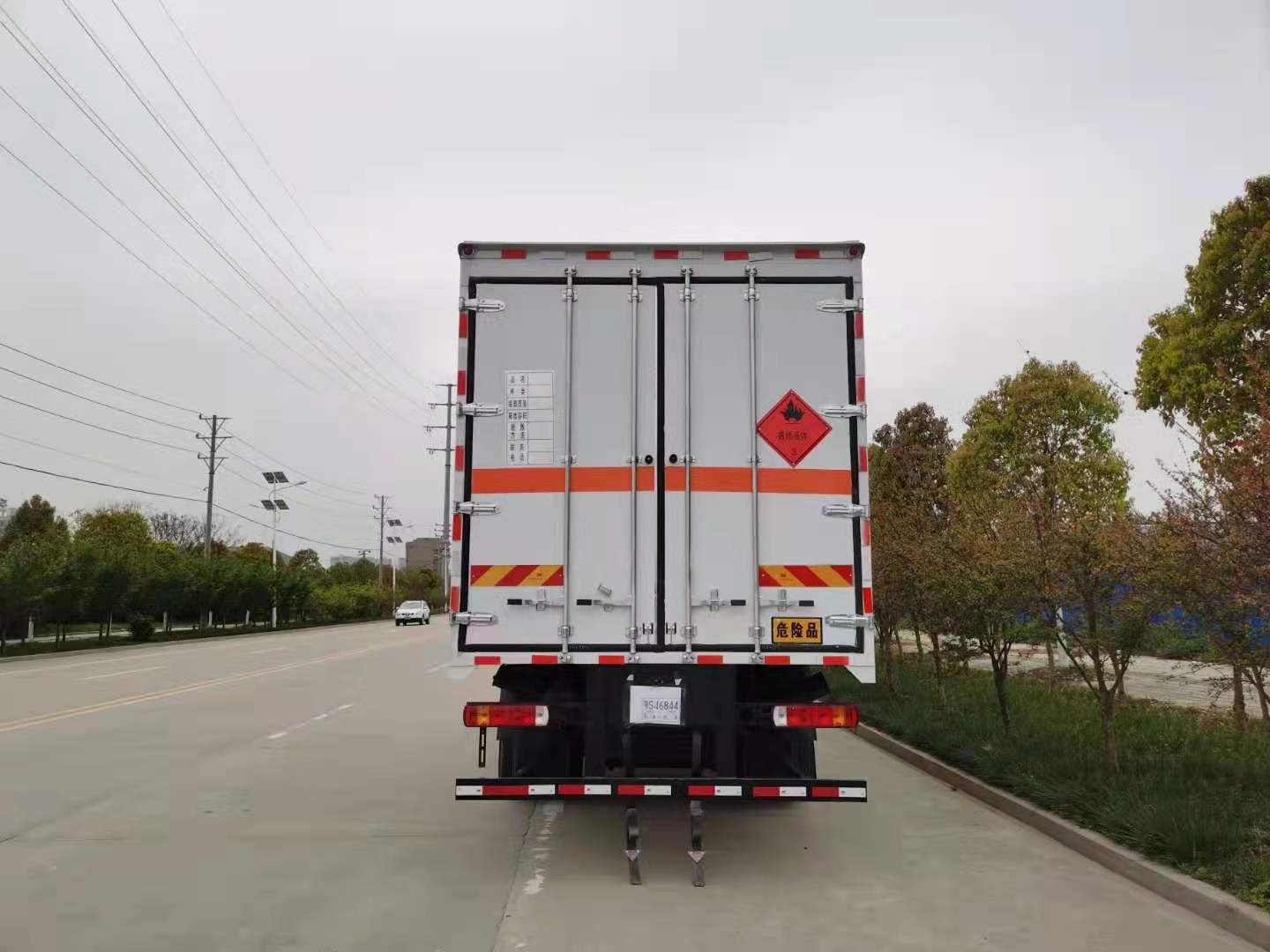 福田歐航國六6米8危險品車外板采用1mm厚冷軋板有一次性成型的百葉窗,內飾為導電性能良好的鋁板有透氣孔,內襯為矩形管骨架牢靠穩定,內部填充為透氣防潮阻燃的擠塑板,四種材料經現代工藝復合而成,廂體外部上下鋁合金型材包邊,底板和車廂前下部鋪橡膠皮,后門雙開,右側中部單開門,嚴格按照國家危險品相關法規張貼。