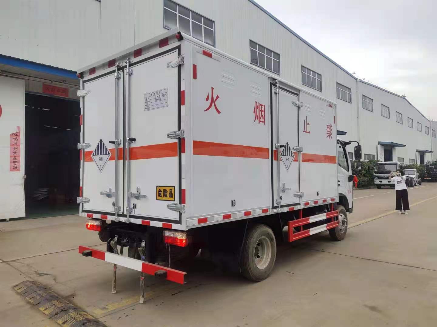 東風福瑞卡F6藍牌危險品廂式車采用東風危險品車底盤,福瑞卡駕駛室,云內125馬力發動機,萬里揚5檔箱,7.00R16輪胎,1.8噸前橋,3.5噸后橋,空調,方向助力,電動門窗,中控鎖,多功能方向盤,定速巡航,ABS,斷氣剎。整車尺寸:5995×2150×2950;廂體尺寸:4120×2020×1850mm。廂體嚴格按照公告尺寸制作,外板采用1mm厚冷軋板有一次性成型的百葉窗,內飾為導電性能良好的鋁板有透氣孔,內襯為矩形管骨架牢靠穩定,內部填充為透氣防潮阻燃的擠塑板,四種材料經現代工藝復合而成,廂體外部上下鋁合金型材包邊,底板和車廂前下部鋪橡膠皮,后門雙開,右側中部單開門,車輛外部有靜電帶、滅火器、防火罩,車廂內安裝煙霧報警器和門防盜報警器,嚴格按照國家危險品相關法規張貼。