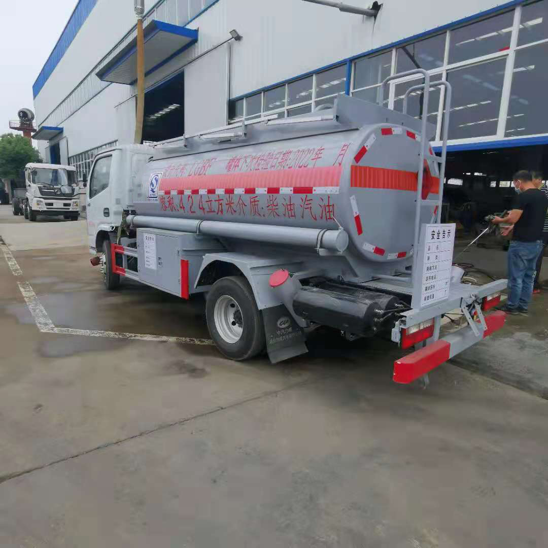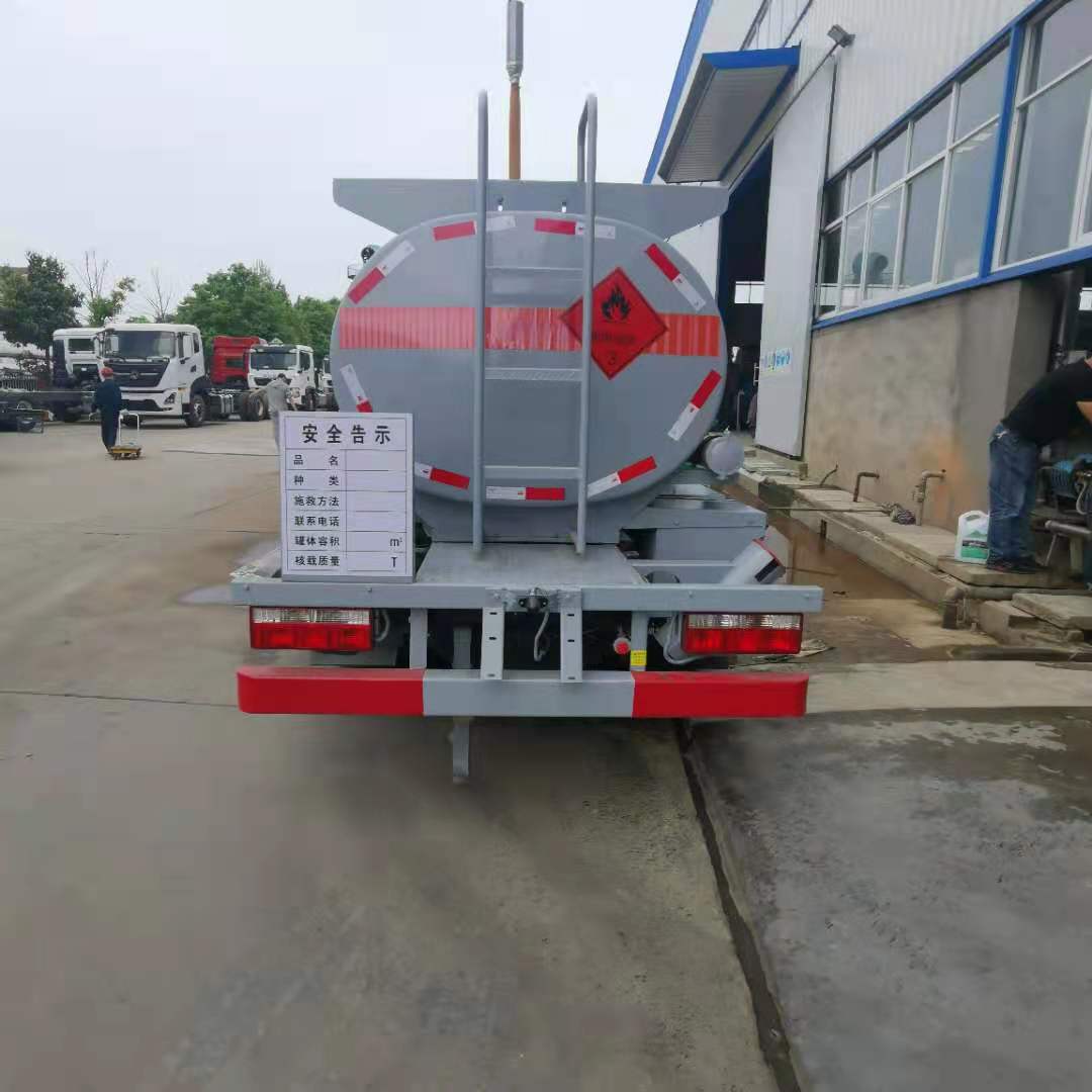東風D6黃牌油罐車罐體采用4.5MM鋼材制作。罐體有效容積5.3立方,帶一個專用油泵,帶一套歐標系統(卸油閥、油氣回收閥、防溢流探桿、防靜電卷盤),帶一個歐標罐口,帶一個智能關閉海底閥,泵進泵出下裝口在右側,一個大流量加油機帶15米加粗卷盤槍(加油機在主駕側中部)。兩根罐體等長PVC炮筒,升降護欄,尾部爬梯,2根透明帶鋼絲狀卸料管,2個滅火器,帶防火罩,一個工具箱,油漆:銀灰色金屬漆。外部標識:反光帶、反光條、反光板、安全告示牌、“易燃液體”標識,其他廠家標配,提供底盤證,整車證,上戶發票。