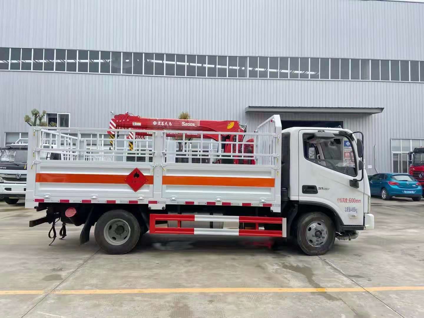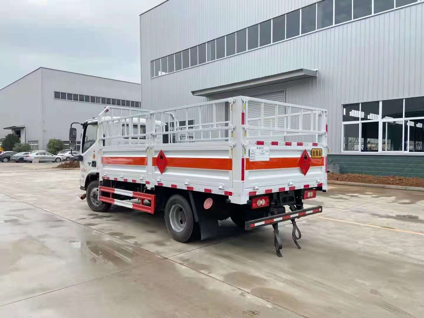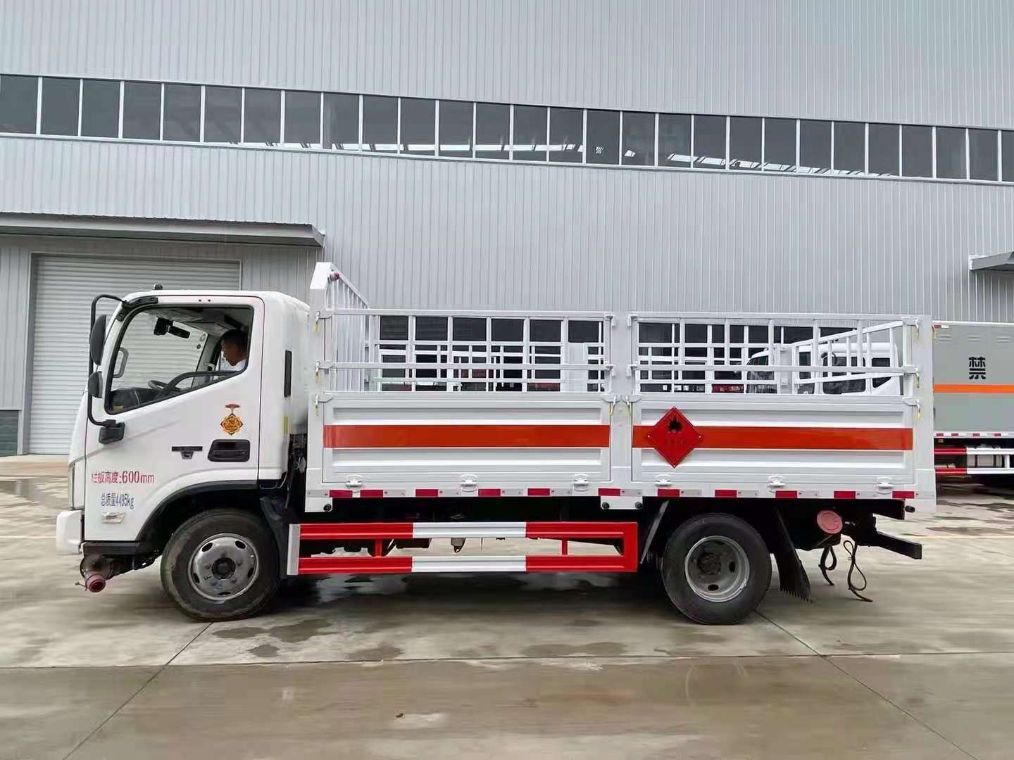 福田歐馬可S1國(guó)六氣瓶運(yùn)輸車采用底板采用4mm厚綱板制作,帶活動(dòng)可拆卸高欄,底部鋪靜電膠皮。帶危險(xiǎn)品三角燈防火罩。廂體為欄板結(jié)構(gòu),欄板可向下放倒。該車配有車載專用氣體感應(yīng)報(bào)警器及后門防盜器,有靜電帶、滅火器、防火罩。整車國(guó)標(biāo)反光標(biāo)示及警告標(biāo)志。