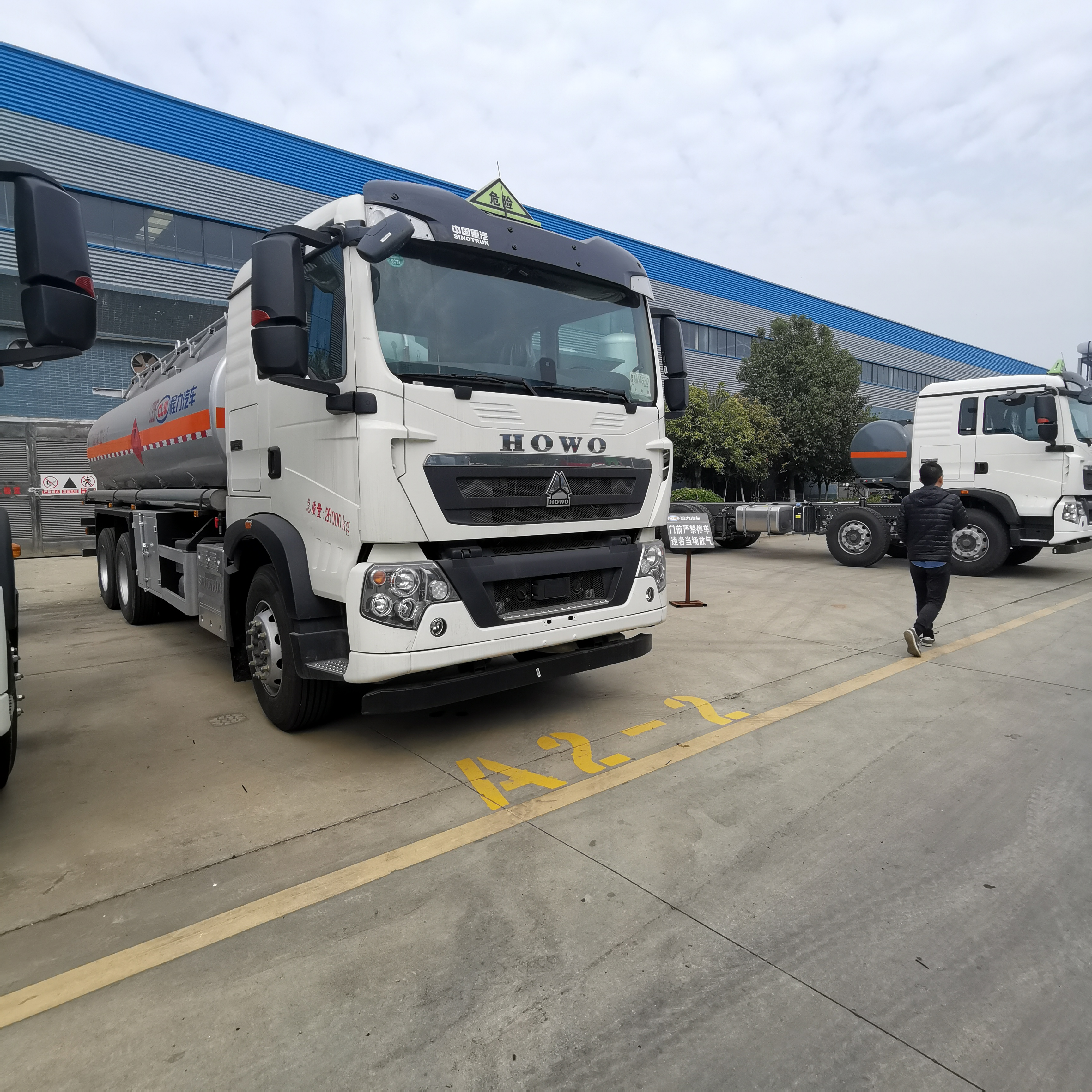 油罐車:又稱流動加油車、電腦稅控加油車、引油槽車、裝油車、運油車、拉油車、石油運輸車、食用油運輸車,主要用作石油的衍生品(汽油、柴油、原油、潤滑油及煤焦油等油品)的運輸和儲藏。 油罐車根據不同的用途和使用環境有多種加油或運油功能,具有吸油、泵油,多種油分裝、分放等功能。運油車用部分由罐體、取力器、傳動軸、齒輪油泵、管網系統等部件組成。 管網系統由油泵、三通四位球閥、雙向球閥、濾網、管道組成。根據市場需求,目前我司非常受歡迎的當然要數重汽豪沃后八輪國六油罐車,以下是詳細配置如下: