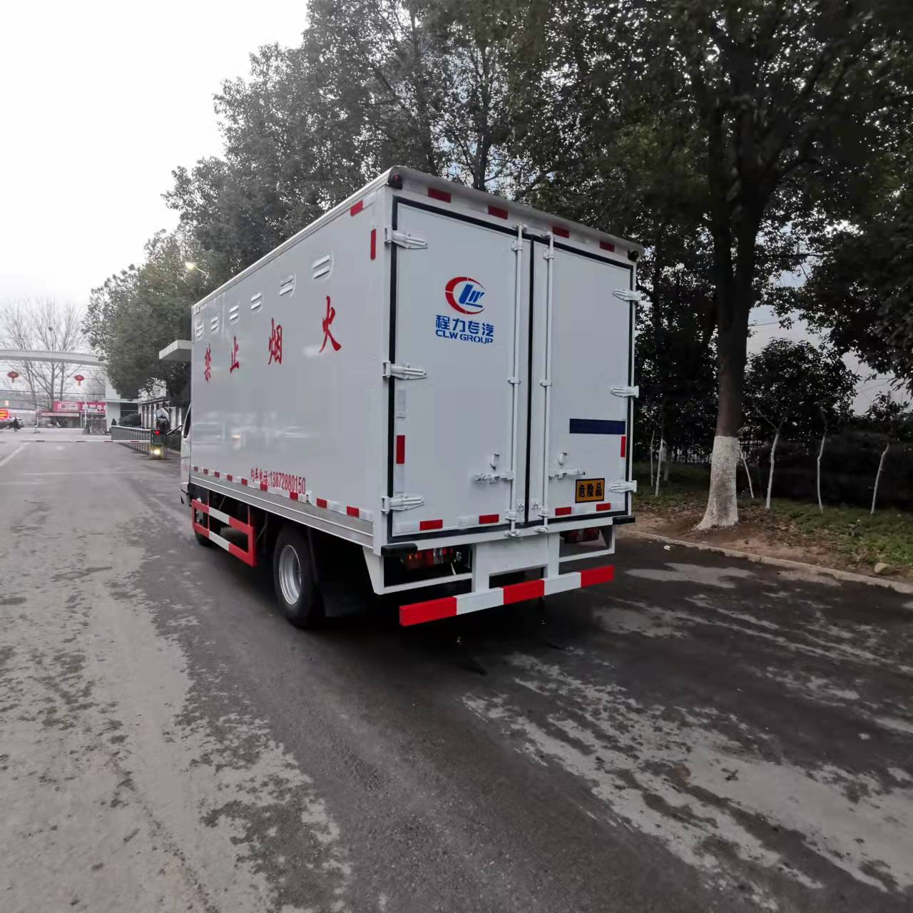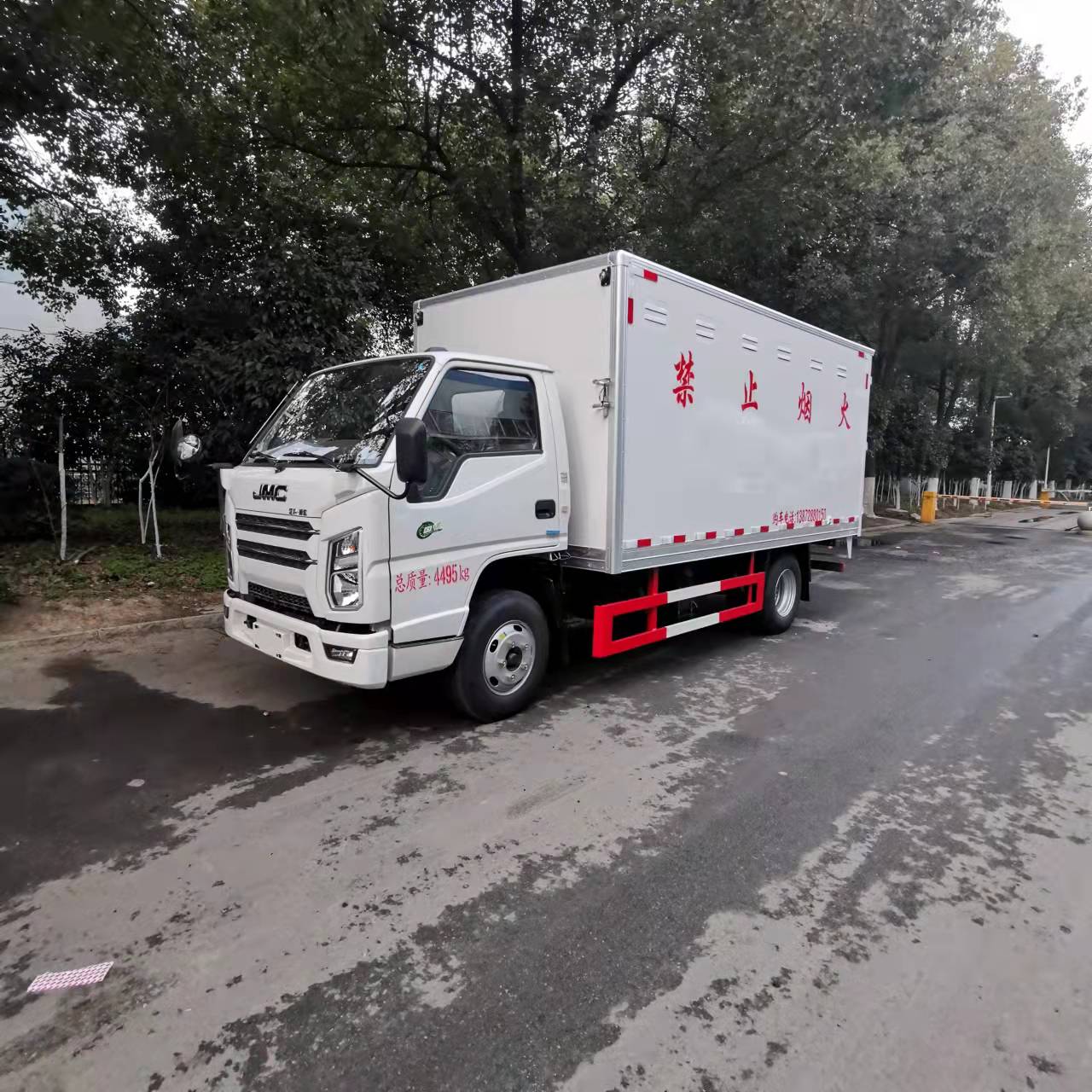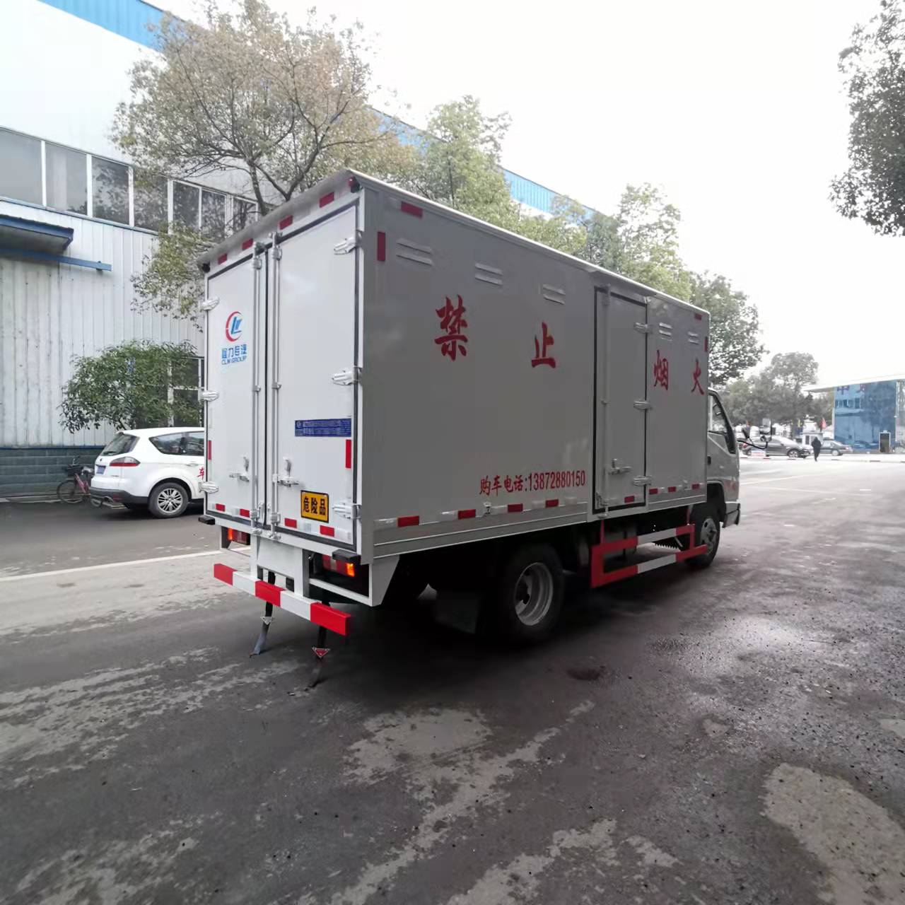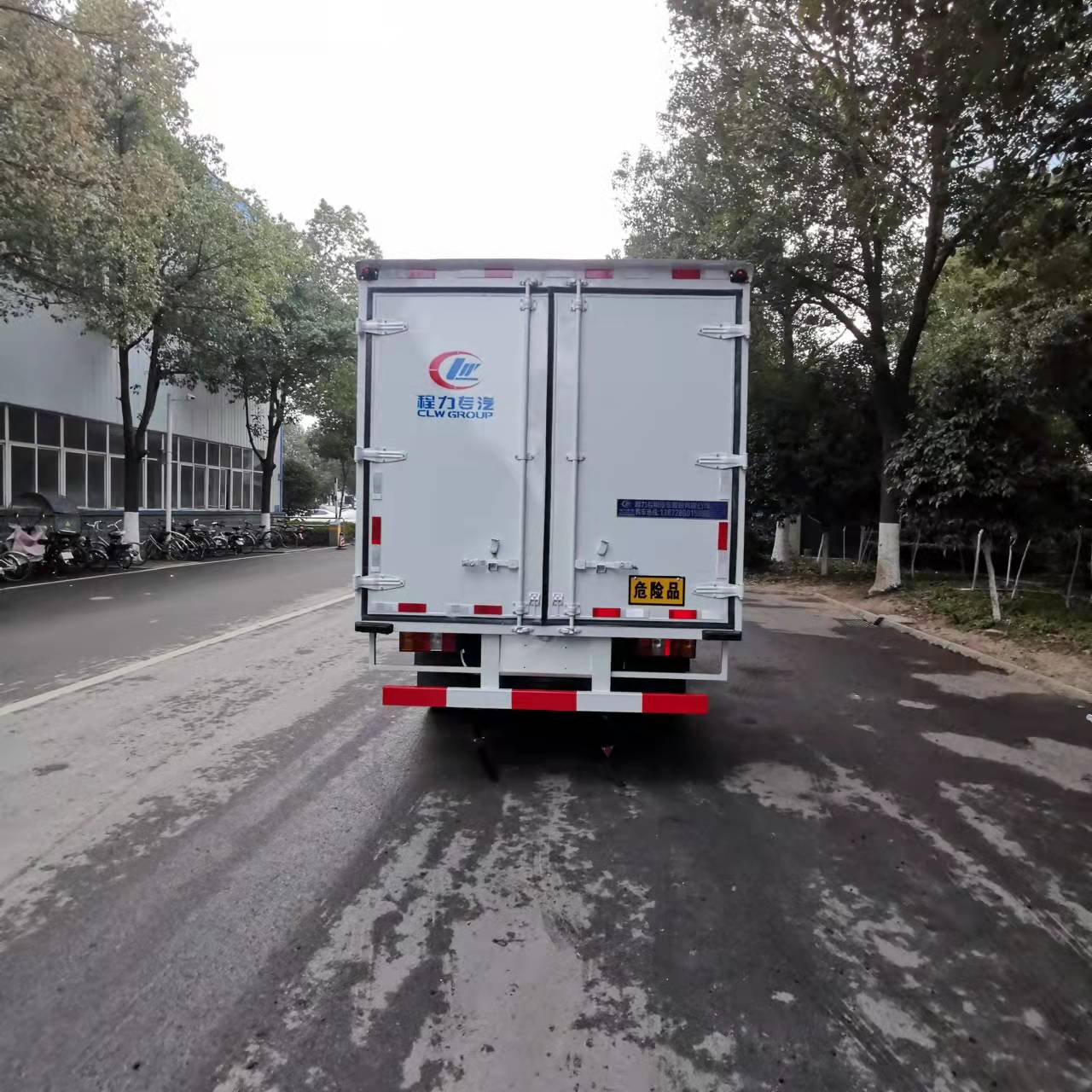 江鈴國六藍(lán)牌易燃?xì)怏w廂式運(yùn)輸車嚴(yán)格按照公告尺寸制作,外板采用1mm厚冷軋板有一次性成型的百葉窗,內(nèi)飾為導(dǎo)電性能良好的鋁板有透氣孔,內(nèi)襯為矩形管骨架牢靠穩(wěn)定,內(nèi)部填充為透氣防潮阻燃的擠塑板,四周種材料經(jīng)現(xiàn)代工藝復(fù)合而成,廂體外部上下鋁合金型材包邊,底板和車廂前下部鋪橡膠皮,后門雙開,右側(cè)中部單開門,內(nèi)部有固定貨物的臥環(huán),車輛外部有靜電帶、滅火器、防火罩,車廂內(nèi)安裝煙霧報(bào)警器和門防盜報(bào)警器,嚴(yán)格按照國家危險(xiǎn)品相關(guān)法規(guī)張貼。