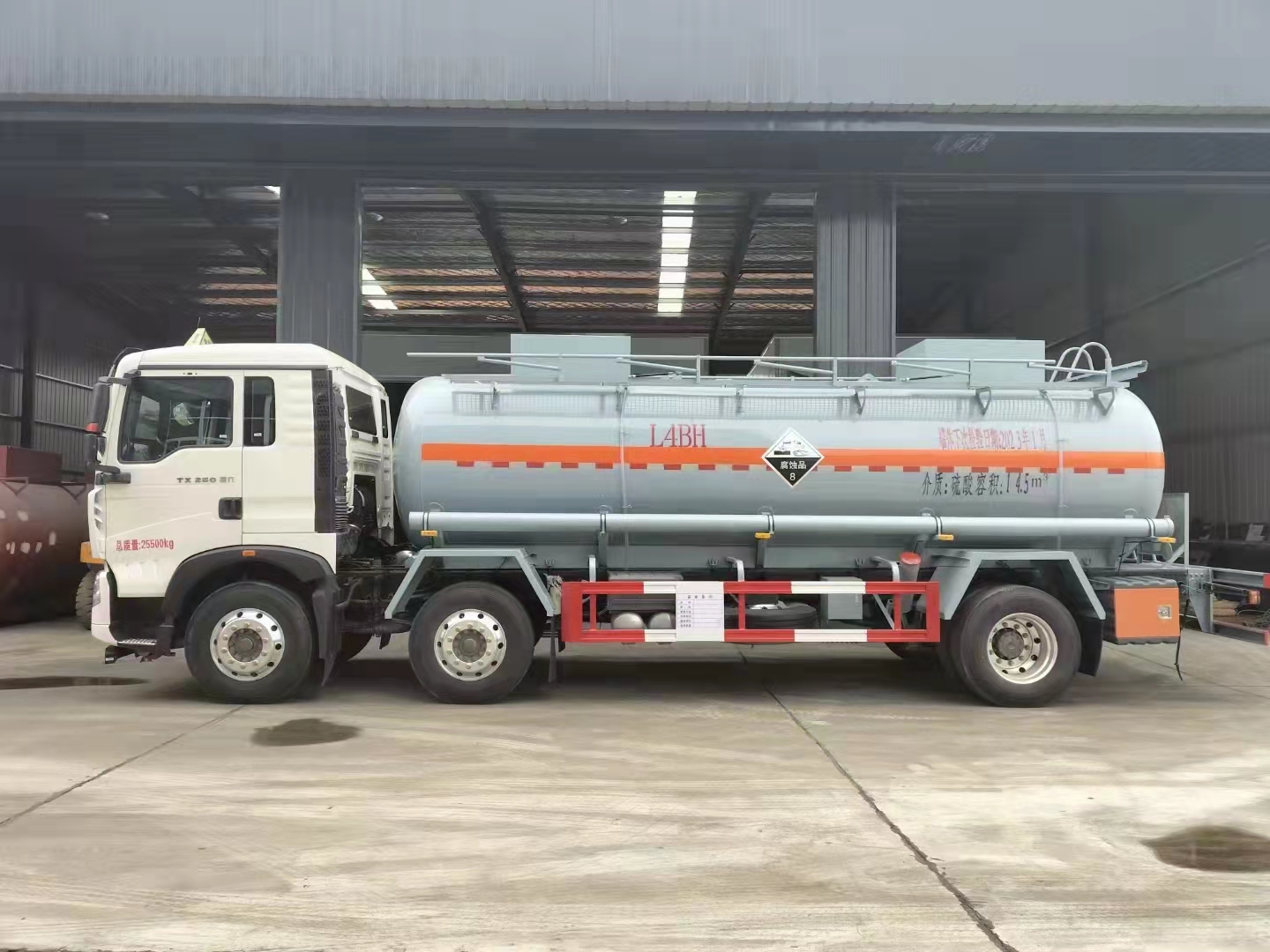 運輸鹽酸、硫酸、氫氧化鈉溶液、磷酸溶液、硝酸、乙酸溶液、次氯酸鈉等8類腐蝕品都需要專用的車輛,不超重容積大的車型當然要數(shù)重汽豪沃15噸小三軸國六鋼襯塑罐車,以下是詳細配置介紹: