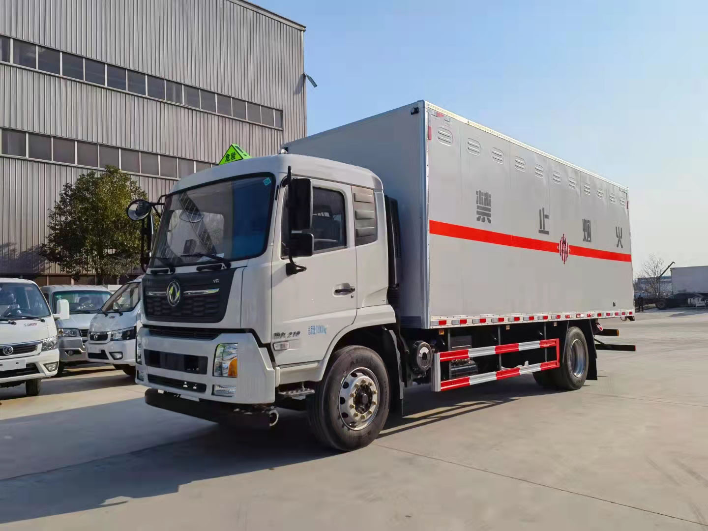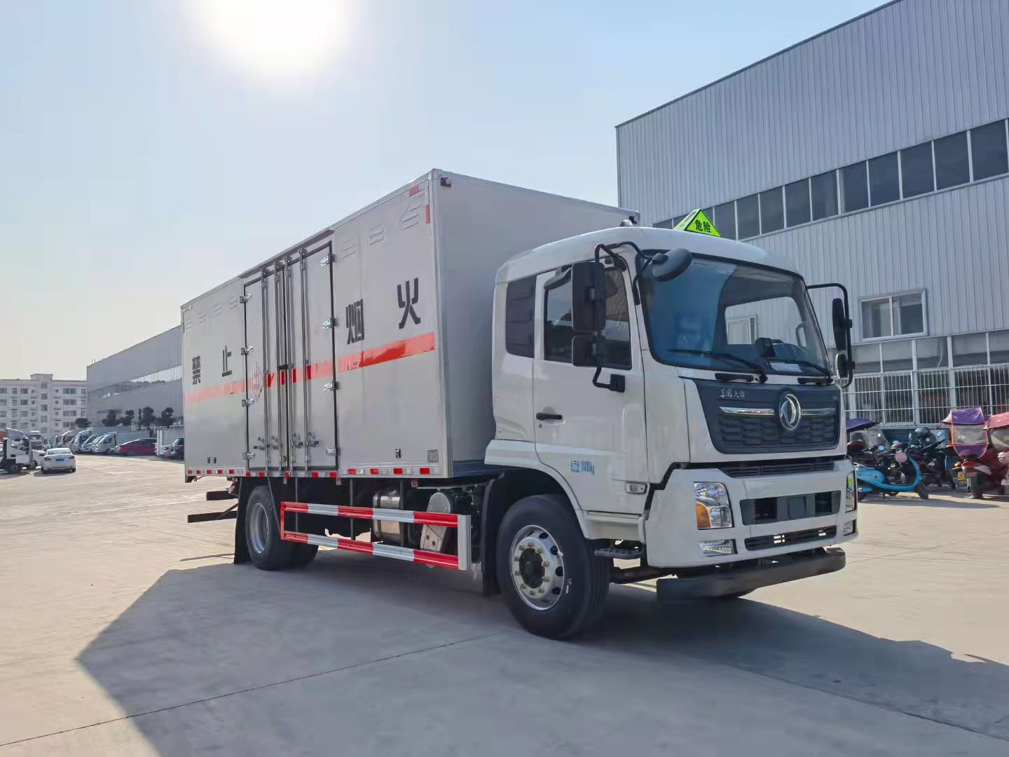 額載10噸廂長6.85米東風天錦易燃固體廂式運輸車雙面夾層結構,外板采用免漆板有一次性沖壓成型的百葉窗,內飾為導電性能良好的鋁板有透氣孔,復合加鉚合工藝,內襯為矩形管骨架牢靠穩定,骨架內部填充為透氣防潮阻燃材料。廂體外部四周鋁合金型材包邊。鋪靜電膠皮,隨車配有靜電帶,滅火器,危險品三角頂燈。整車國標反光標示及警告標志。尾部可選裝液壓升降尾板,卸貨方便。