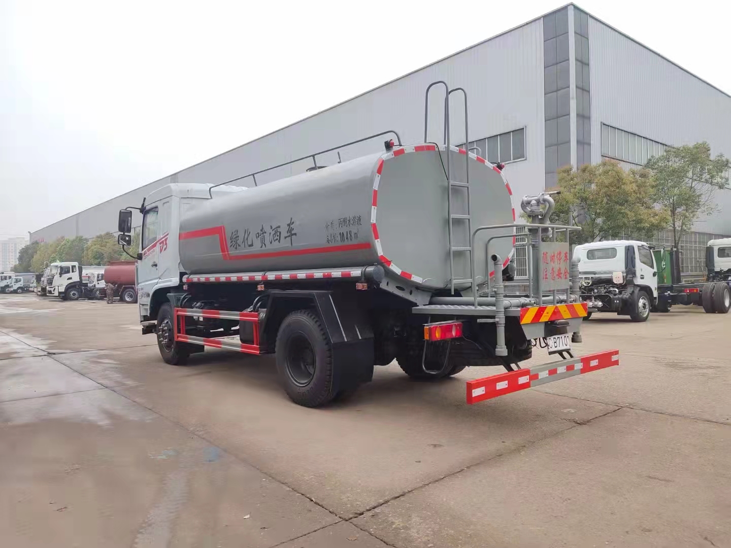 東風D3國六12方灑水車采用的是新款駕駛室,玉柴165馬力發動機,3950mm,玉柴165馬力發動機,3950mm軸距,9.00鋼絲胎,采用法士特8檔變速箱,8噸后橋,原廠空調,中控鎖,氣囊座椅,電動門窗。罐體采用國標4mm厚優質碳鋼板制作,前沖、后灑、側噴、軸承高炮及大平臺,大功率60-90灑水泵,其他常規。