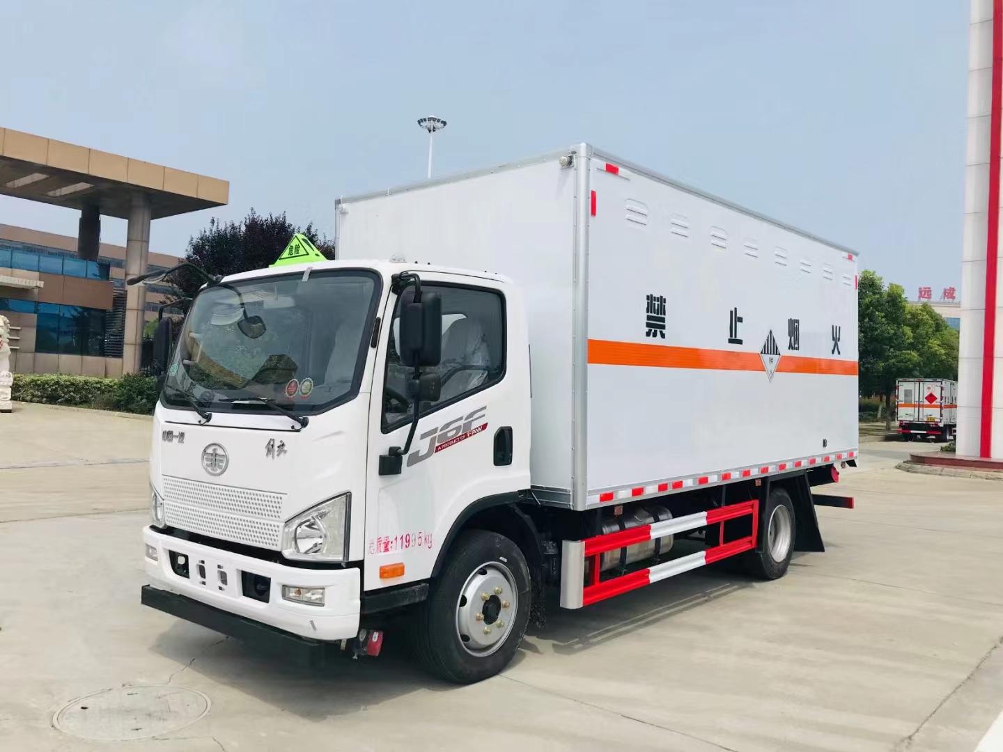 解放國六大柴160馬力5米1危險品車采用的是解放新款發動機大柴160馬力底盤,國六3900軸距危貨,底盤型號:CA1120P40K59L4BE6A84,J6F單排駕駛室,CA4DD1-16大柴160馬力,6TS55B,325H后橋(速比5.125輪距1678)車架865*216*75*6,245/70R19.5 16PR,多功能方向盤,150L鋁合金油箱,板簧3/10+4,帶國產ABS,定速巡航,高架箱,空調+電動門窗+中控鎖,后處理器前置+排氣火花熄滅器+前盤后鼓制動器+限速79KM/H,北斗+GPRS行車記錄儀,帶靜電拖地帶,前下防護,防飛濺擋泥板,液晶儀表,電加熱后視鏡,爆胎應急安全裝置,前碰撞預警+車道偏離輔助預警。