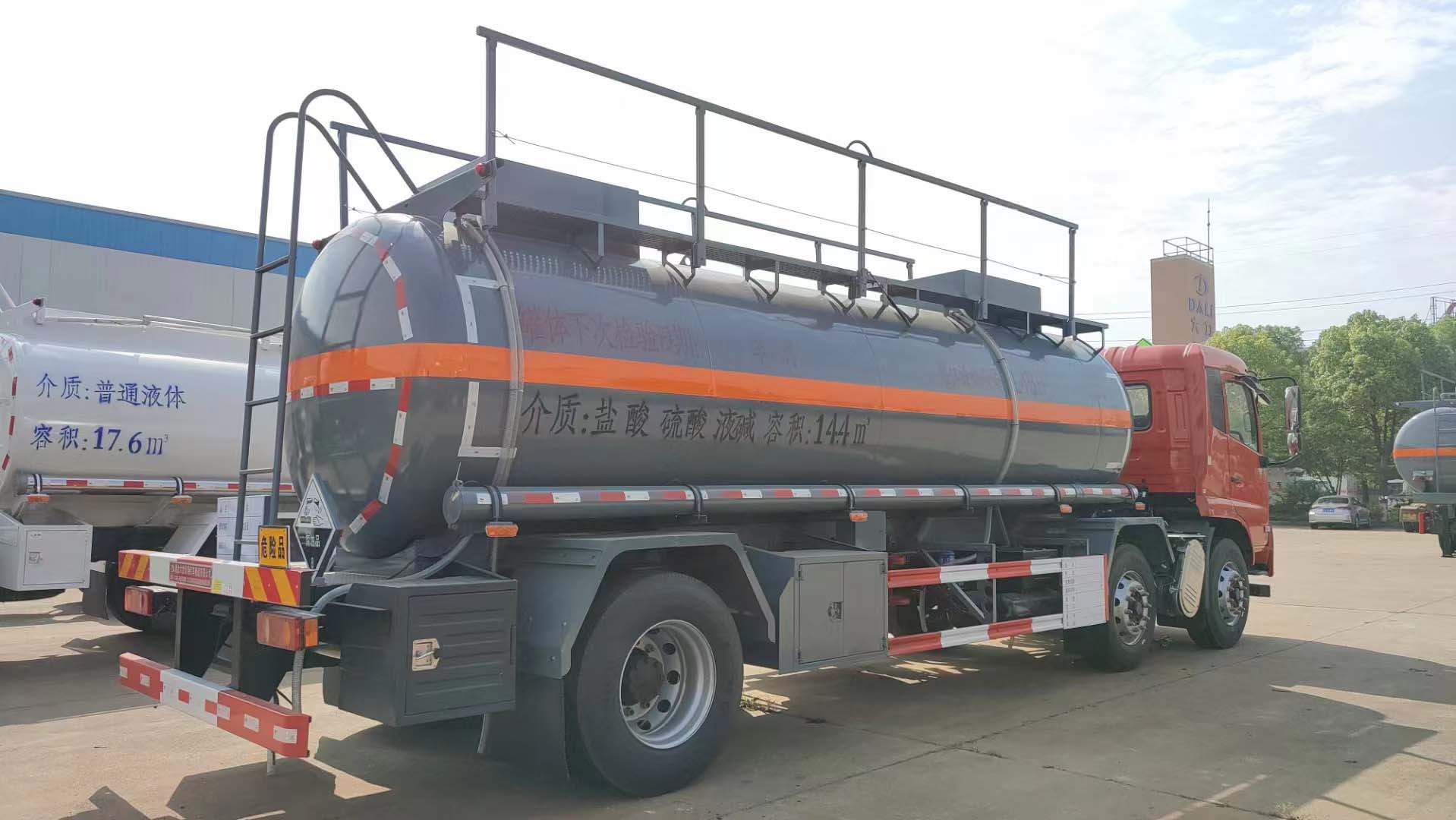 15噸罐式運輸可出鹽酸、硫酸、氫氧化鈉溶液、磷酸溶液、硝酸、乙酸溶液、等8類腐蝕品車輛,選擇哪一款更合適,用習慣天錦的車輛客戶,當然會優先提出采用東風天錦三軸國六腐蝕品罐式運輸車,以下是詳細配置介紹: