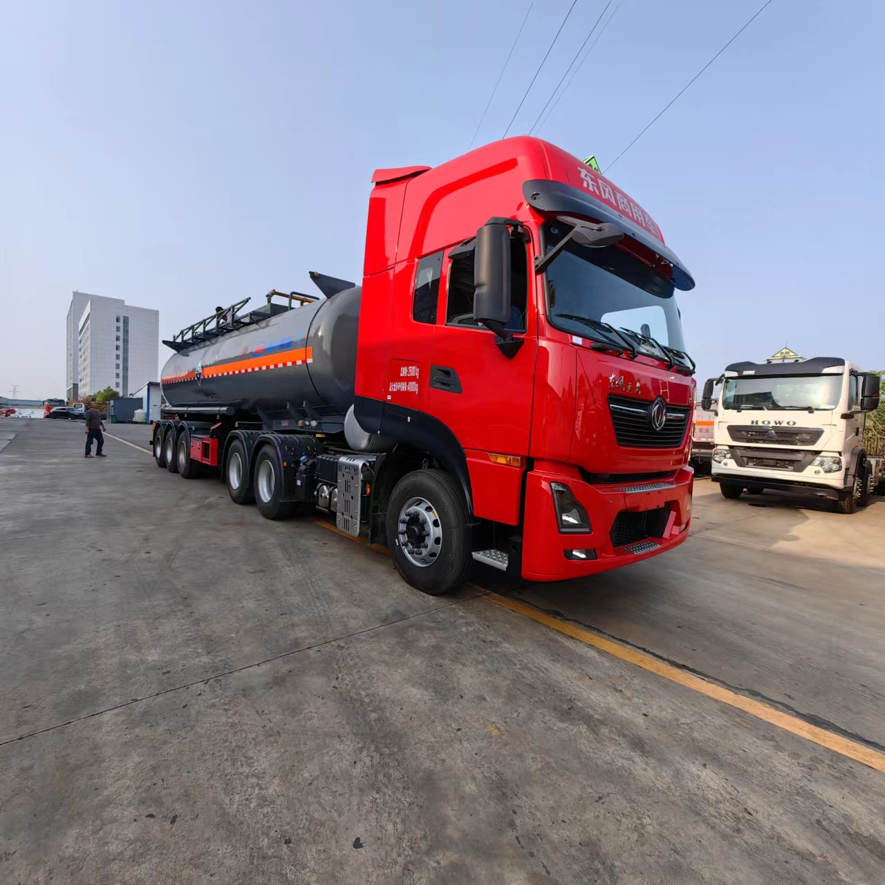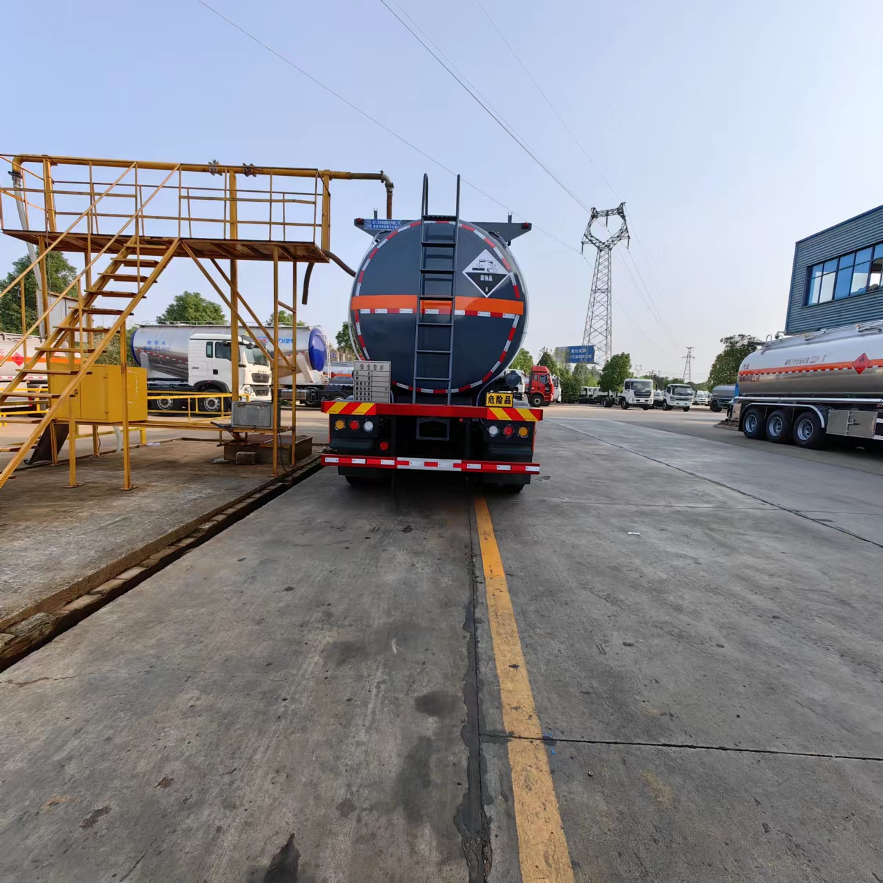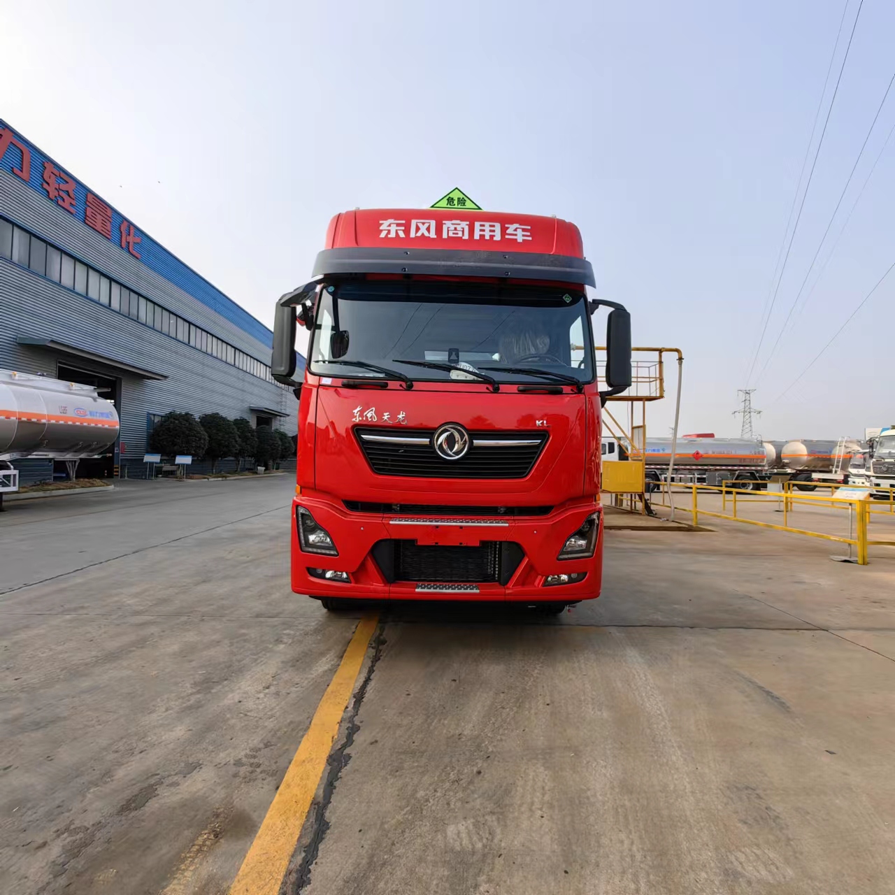 東風天龍高頂雙臥半掛腐蝕品運輸車罐體采用優(yōu)質(zhì)國標Q235碳鋼材質(zhì)制作,筒體厚度封頭厚度按GB18564-1設計,罐體內(nèi)部襯聚乙烯16mm厚。罐頂單圍板,圍板內(nèi)做防腐處理,兩側(cè)鐵質(zhì)活動護欄,罐頂兩個全塑進料口帶接酸盤(采用標配子口直徑為250mm),罐頂做落水管引至后封頭落水。罐體單倉,罐體內(nèi)防蕩隔板按技術設計。罐體底部一個DN100氣動不銹鋼襯四氟海底閥總控帶緊急切斷開關后保險杠控制(加裝5公里報警裝置),通過三通鋼襯塑管道,后尾部左右各一個DN80 鋼襯塑球閥帶DN80 PP出口,出口帶全塑保護箱。罐體兩側(cè)為PVC炮筒管,2根耐酸卸料軟管,2只8KG滅火器,罐體活動爬梯按公告圖片制作,三塊安全告示牌,按公告圖片張貼3M反光條、反光帶及腐蝕品標識。罐體顏色:深灰色,整車外觀及尺寸嚴格按照公告圖片制作。