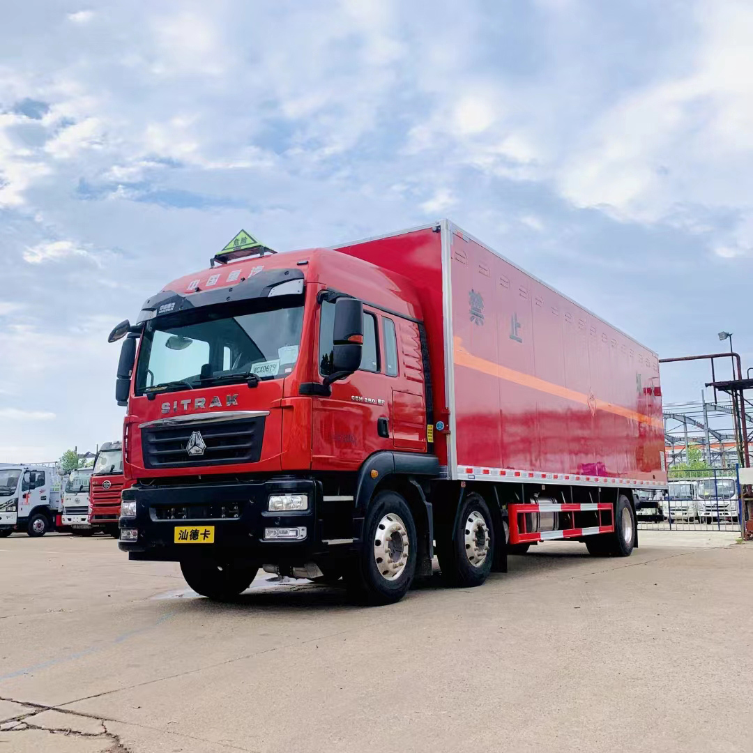 汕德卡國六三軸紅色帶雙開側(cè)門危險(xiǎn)品車采用的是專用危貨底盤,汕德卡 G5暢行駕駛室;選用的是高頂雙臥;帶多功能方向盤、電動(dòng)電加熱后視鏡、可選MC07.25-60發(fā)動(dòng)機(jī)或310馬力發(fā)動(dòng)機(jī);HW95508STCL變速箱;VPD050QB前軸(盤);MCY11BGS自調(diào)臂單后橋(鼓);速比4.63;雙層車架(8+4/280);前少后空氣懸架(3/3/-);博世方向機(jī);限速79km/h;前置排氣系統(tǒng);AEBS(EBS+ESC);高位保險(xiǎn)杠;295/80R22.5輪胎;400L油箱;LDWS+FCWS;中國重汽智能通B版;電磁式電源開關(guān);終端排放監(jiān)控裝置;轉(zhuǎn)向輪爆胎應(yīng)急裝置;165AH蓄電池。
