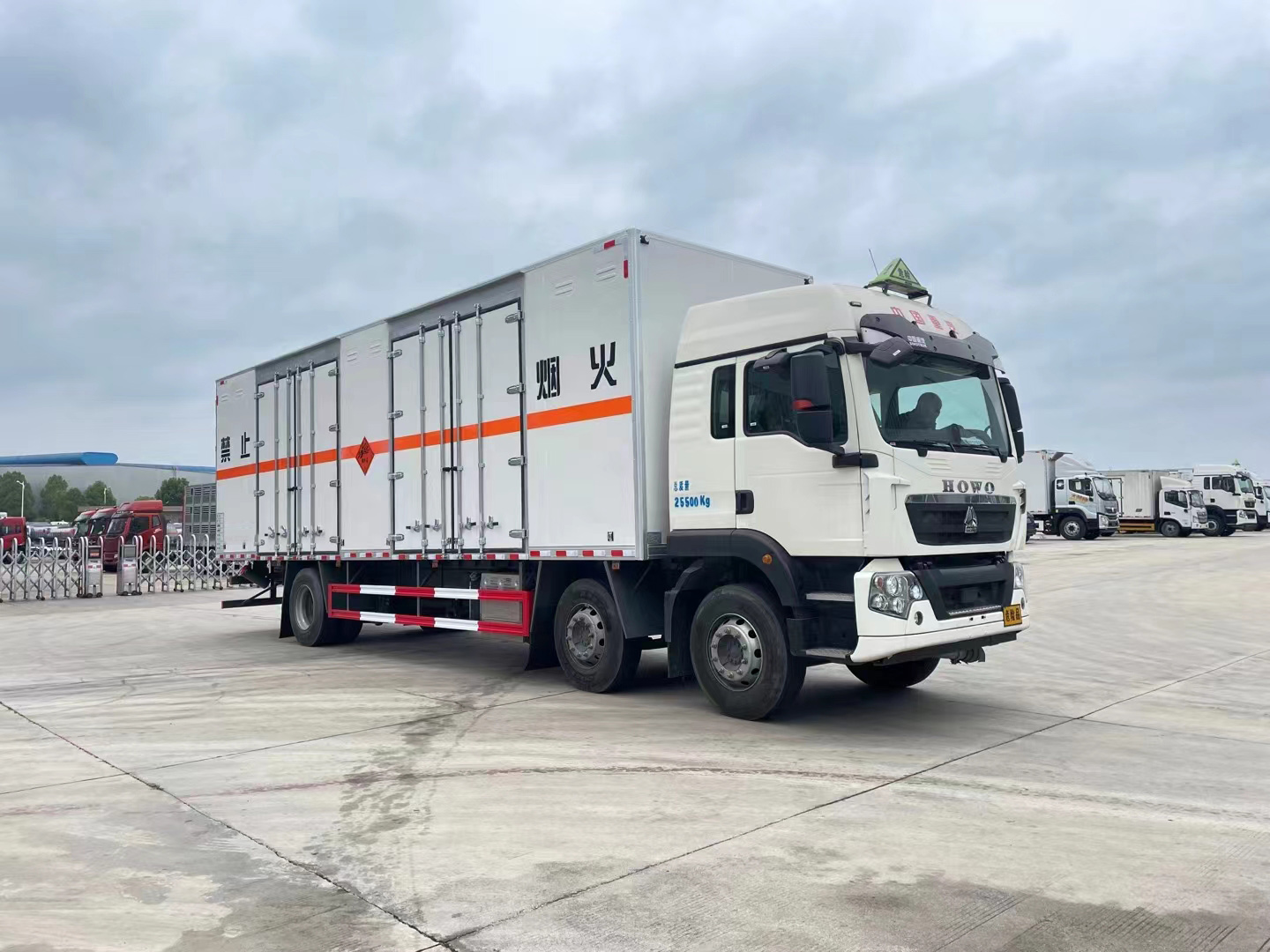 重汽豪沃9.6米三軸煙花爆竹運輸車采用的是豪沃專用危化品底盤,可選濰柴310馬力或濰柴250馬力,可帶高頂雙臥駕駛室,駕乘人數(shù)為3人,除了裝載駕駛員、爆破員還可以承載押運員。箱體內(nèi)部容積63.5方,德國曼310馬力發(fā)動機,9檔變速箱,295真空胎,速比4.63,400L油箱。采用的是HW95508STC變速箱;VPD75D前軸(盤);MCY11BES單后橋(盤);速比4.63;雙層車架(8+4/280);前少后空氣懸架(3/3/-);國產(chǎn)方向機;前置排氣系統(tǒng);EBS+ESC;中位保險杠(非金屬);鋁合金車輪(國產(chǎn));295/80R22.5;300L油箱;LDWS+FCWS(帶雷達);旋鈕式PTO;中國重汽智能通D版;電磁式電源開關;轉向輪爆胎應急裝置;選裝胎壓監(jiān)測系統(tǒng);(ZZ1267N56CGF1K/MC07.25-60)。