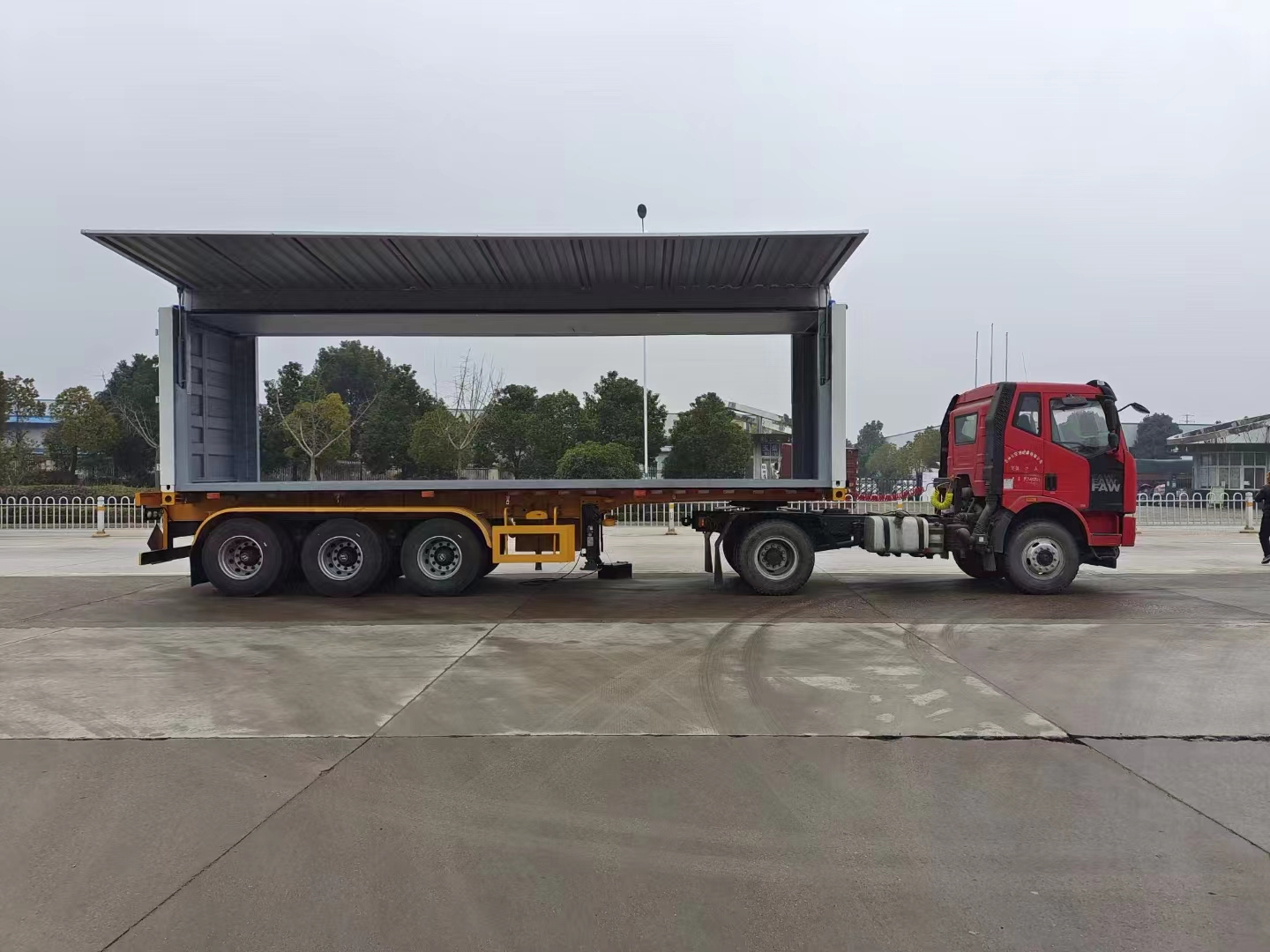 該車貨箱尺寸13000*2450*2650mm,瓦楞板箱體全部烤漆后裝車,車箱體全部采用烤漆板制作,油漆質(zhì)保5年之久,讓您在運輸途中車輛不受外觀生銹影響。箱體根據(jù)裝貨要求可選單開側(cè)門、雙側(cè)門或者三開側(cè)門,箱體內(nèi)部帶雙排臥環(huán)也可以根據(jù)運輸要求選擇卡槽等固定形式。