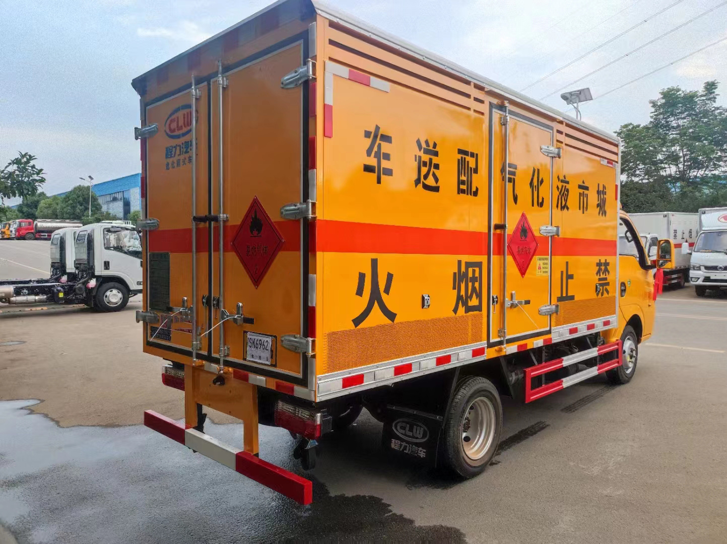 為了統一管理,該車匹配有定制的顏色,尤其是液化氣瓶配送都采用的是定制全部工程黃,讓運輸的過程能一眼明示。采用的是外冷軋板內鋁板中間夾阻燃材料,帶中開側門,尾部帶后雙開門,裝卸貨方便。為了讓貨物在箱體內流通更方便,該車貨箱全部采用的是上下透氣孔結構,更安全。