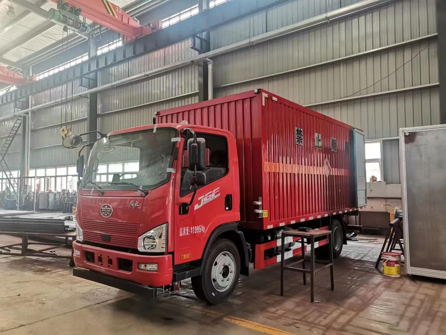 雜項運輸車被俗稱為危險品車九類,主要運輸廢機油,含銅廢物,含鎳廢物,含鉛廢物,含鉻廢物,廢棄電池,廢物編號:HW08, HW21,HW22, HW26,HW31,HW46,HW49。該類運輸以中型車運輸為多,尤其是7噸的車型。今天為您推薦的是解放紅色一排半雜項運輸車,以下是詳細配置介紹: