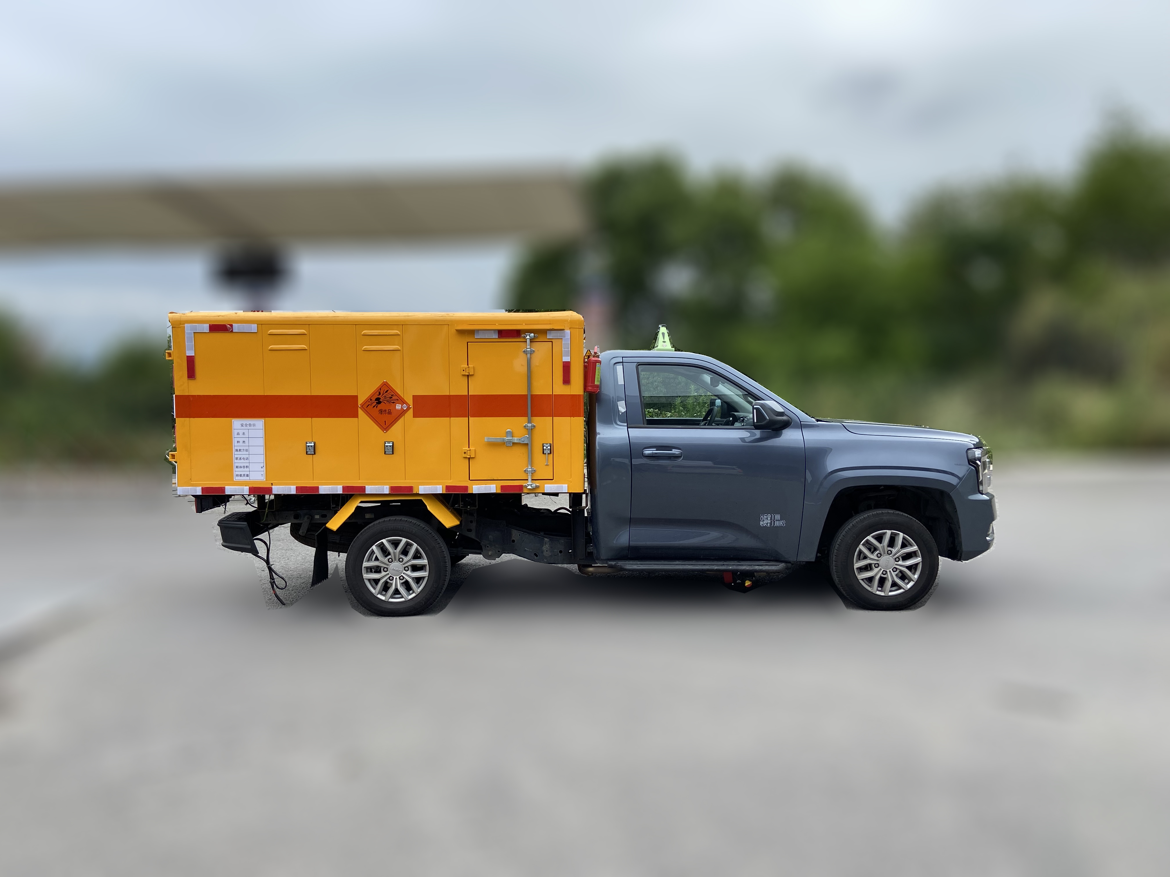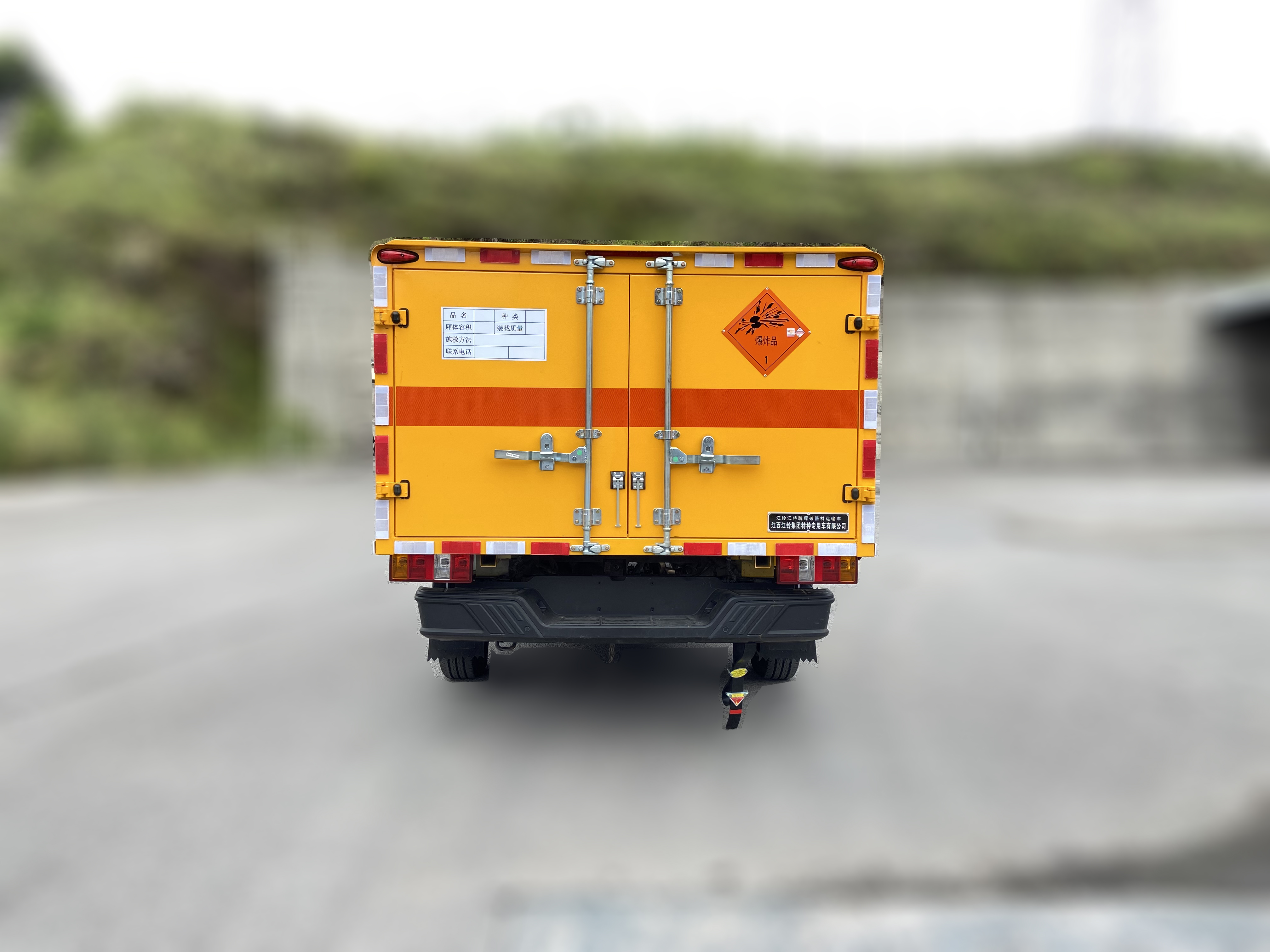 江鈴大道原廠全新規(guī)國(guó)六四驅(qū)皮卡爆破器材運(yùn)輸車整車型號(hào)JMT5034XQYXYF6,3270mm軸距,上戶815kg,新規(guī)(車道偏離預(yù)警,防碰撞預(yù)警),采用江鈴皮卡JX1037TFA6單排駕駛室,江鈴177馬力發(fā)動(dòng)機(jī)(JX4D23A6L)采用福特技術(shù),外形尺寸5540*1935*2050mm ,貨箱尺寸2560*1870*1055mm,箱體為雙層金屬骨架結(jié)構(gòu),外冷軋鋼板內(nèi)飾鋁板,內(nèi)壁采用鋁合金板蒙面,夾層為隔熱阻燃材料填充,廂體內(nèi)部做通風(fēng)窗口,中開(kāi)側(cè)門,廂體內(nèi)部做防靜電處理,廂體底部鋪導(dǎo)靜電膠板,車輛副梁配備導(dǎo)靜電帶,廂體內(nèi)襯壁裝單排臥環(huán),廂體內(nèi)頂部安裝煙感報(bào)警器,廂體安裝防盜報(bào)警器。隨車配備手提滅火器,危險(xiǎn)品三角頂燈,防護(hù)帽等,嚴(yán)格按照國(guó)家危險(xiǎn)品法規(guī)進(jìn)行“爆”標(biāo)識(shí)粘貼等。隨車提供資料:機(jī)動(dòng)車購(gòu)車發(fā)票,整車合格證,隨車工具,服務(wù)手冊(cè),保修手冊(cè)。