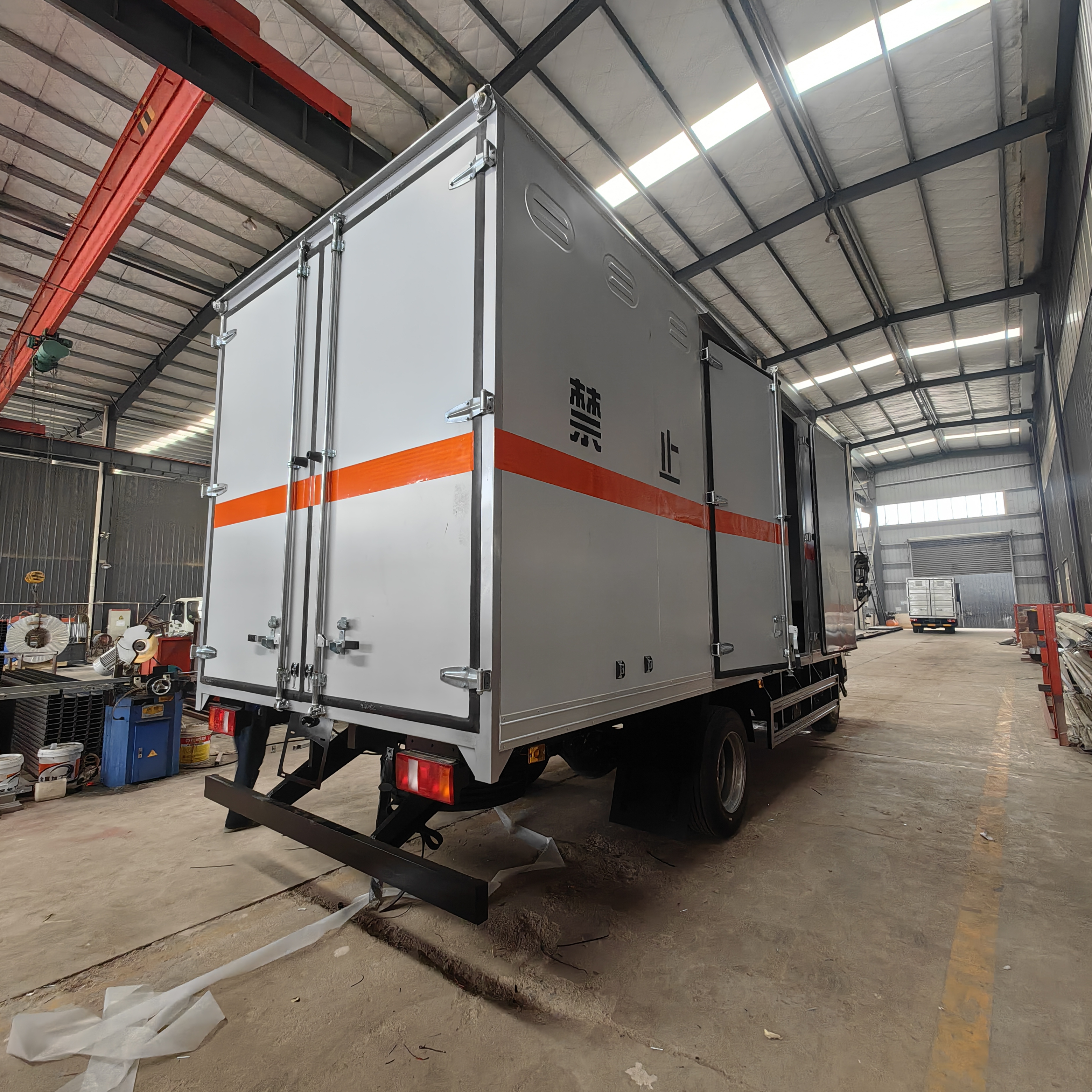 重汽32立方爆破器材運輸車采用的是專用危險品車底盤,濰柴160馬力發動機,貨箱尺寸:5600*2450*2350mm,容積可達32立方。該車的優勢在于可定制瓦楞箱體,裝載容積大。重汽的車型優勢在于扭矩大,后橋大,輸出的功率大,爬坡能力更有勁。在同類車型中,定制該款車型更有優勢,重點是煙花、小產品、真空硝、引線、單基粉等都屬于占容積,不占重量的車輛。選用該款車型更有優勢,額載噸位可達7噸,尾部可加裝液壓尾板,整車不超重。