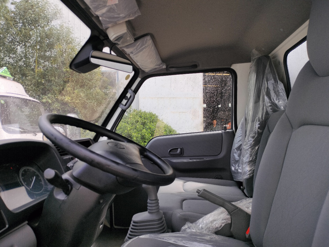 江鈴3米3國六爆破器材運輸車采用的江鈴單排窄體駕駛室,五十鈴122馬力(JX493ZLQ6D)國六發動機,5檔變速箱,2800軸距,7.00防爆鋼絲胎,油剎,方向助力,空調,ABS,排氣管前置,前盤碟剎,限速80碼,爆胎應急安裝裝置,制動襯片報警,安全帶未系提醒,軌道偏離預警,防碰撞預警,超速提醒。