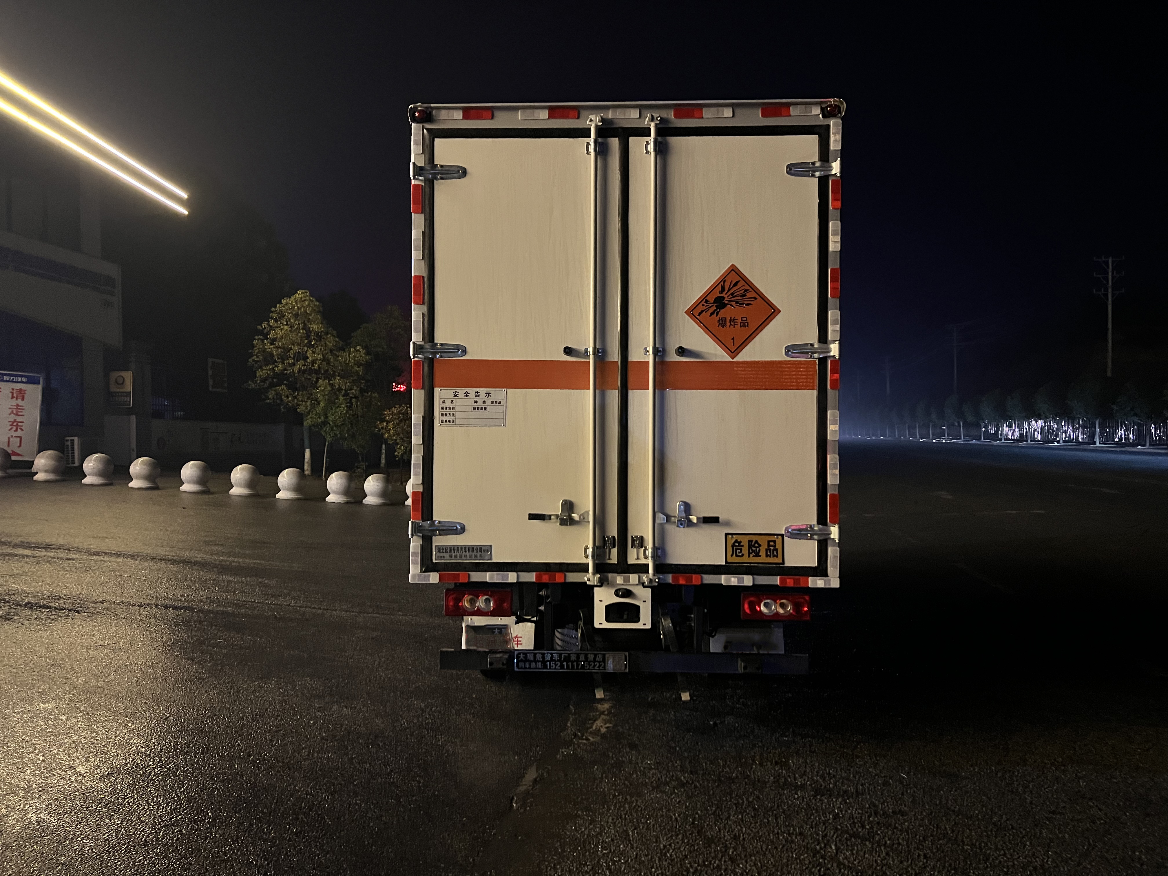 福田歐馬可國(guó)六藍(lán)牌20立方爆破車嚴(yán)格按照公告尺寸制作,外板采用1mm厚冷軋板有一次性成型的百葉窗,內(nèi)飾為導(dǎo)電性能良好的鋁板有透氣孔,內(nèi)襯為矩形管骨架牢靠穩(wěn)定,內(nèi)部填充為透氣防潮阻燃的擠塑板,四種材料經(jīng)現(xiàn)代工藝復(fù)合而成,廂體外部上下鋁合金型材包邊,底板和車廂前下部鋪橡膠皮,后門雙開,右側(cè)前部單開門,帶可卸式隔艙,內(nèi)部有固定貨物的臥環(huán),車輛外部有靜電帶、滅火器、防火罩,車廂內(nèi)安裝煙霧報(bào)警器和門防盜報(bào)警器,嚴(yán)格按照國(guó)家危險(xiǎn)品相關(guān)法規(guī)張貼。