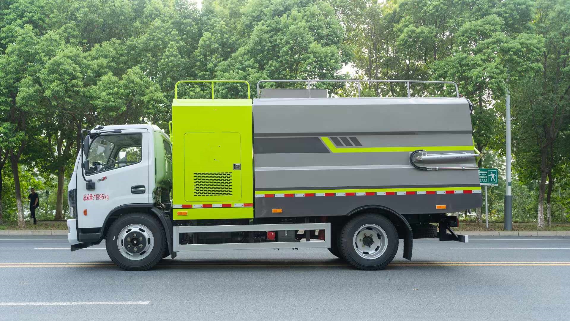 東風福瑞卡F7國六吸塵13方容積,選用的是3800mm軸距,搭配175羅茨風機組,可6方/時高效吸塵。最大作業高度達100米,50米外接電纜線,沙塵葉石都能一網打盡。垃圾箱外形采用長方體的造型,箱體受力均勻,結構性能強,美觀。采用“中置兩掃盤+中置寬吸嘴+內置高壓主噴桿+左右高壓側噴桿”布置形式。掃盤和左右高壓側噴管可獨立控制,實現路面的洗掃及吸塵。