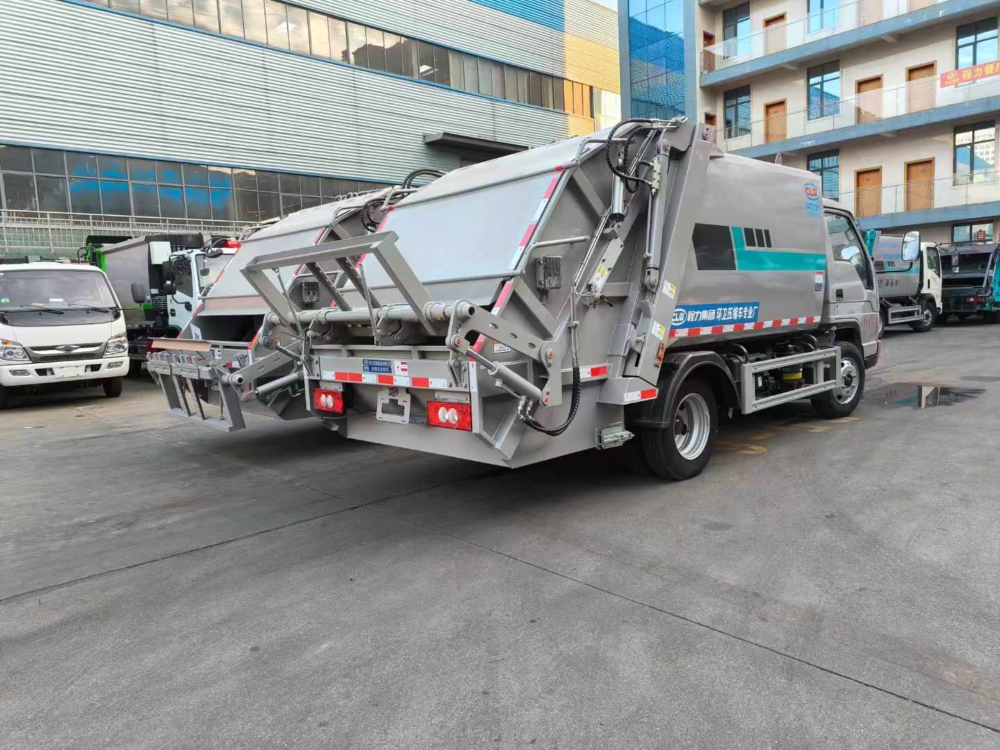 福田小卡藍牌壓縮垃圾車填裝器敞口處可加裝密封蓋板,蓋板開關采用氣動控制,操作輕便,可有效防止垃圾臭味的二次污染,增加填裝器舉升及刮板滑板液壓緩沖裝置,減緩液壓及機構沖擊,降低作業噪音,保障關鍵部件使用壽命。