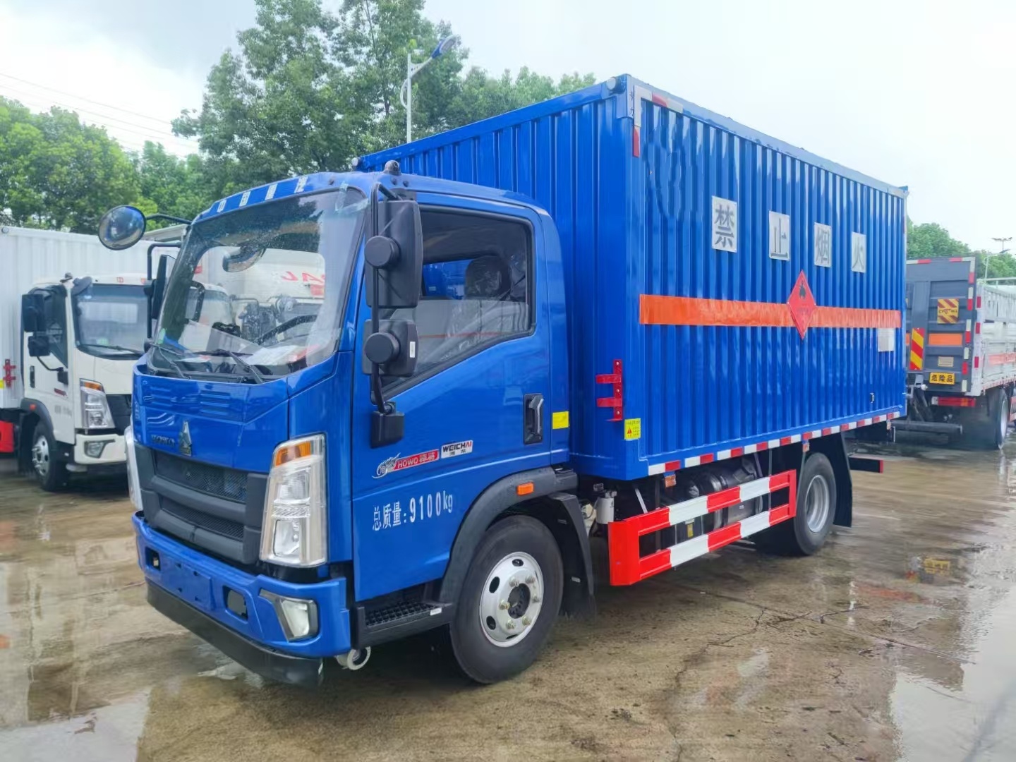 重汽5噸藍色國六易燃氣體廂式運輸車貨箱長度可達4米6,車輛長度有限制的,選擇這一款更合適。滿足用戶要求,價格實惠,是您的不錯之選!