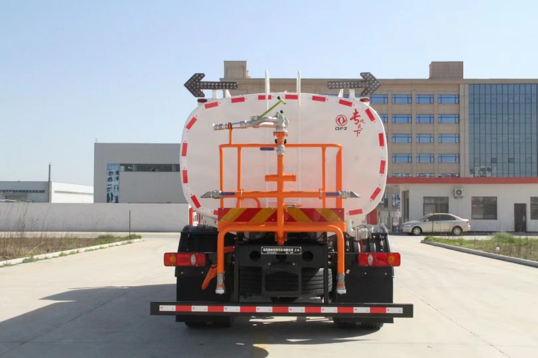 東風天錦國六12方灑水車側護網、后保險杠、均為螺栓連接,方便拆卸,維修方便。塑料擋泥板,替代鐵擋泥板,更加輕便,螺栓連接,方便拆卸。罐體尾部便捷式爬梯,取代扶手爬梯,更加美觀方便。
