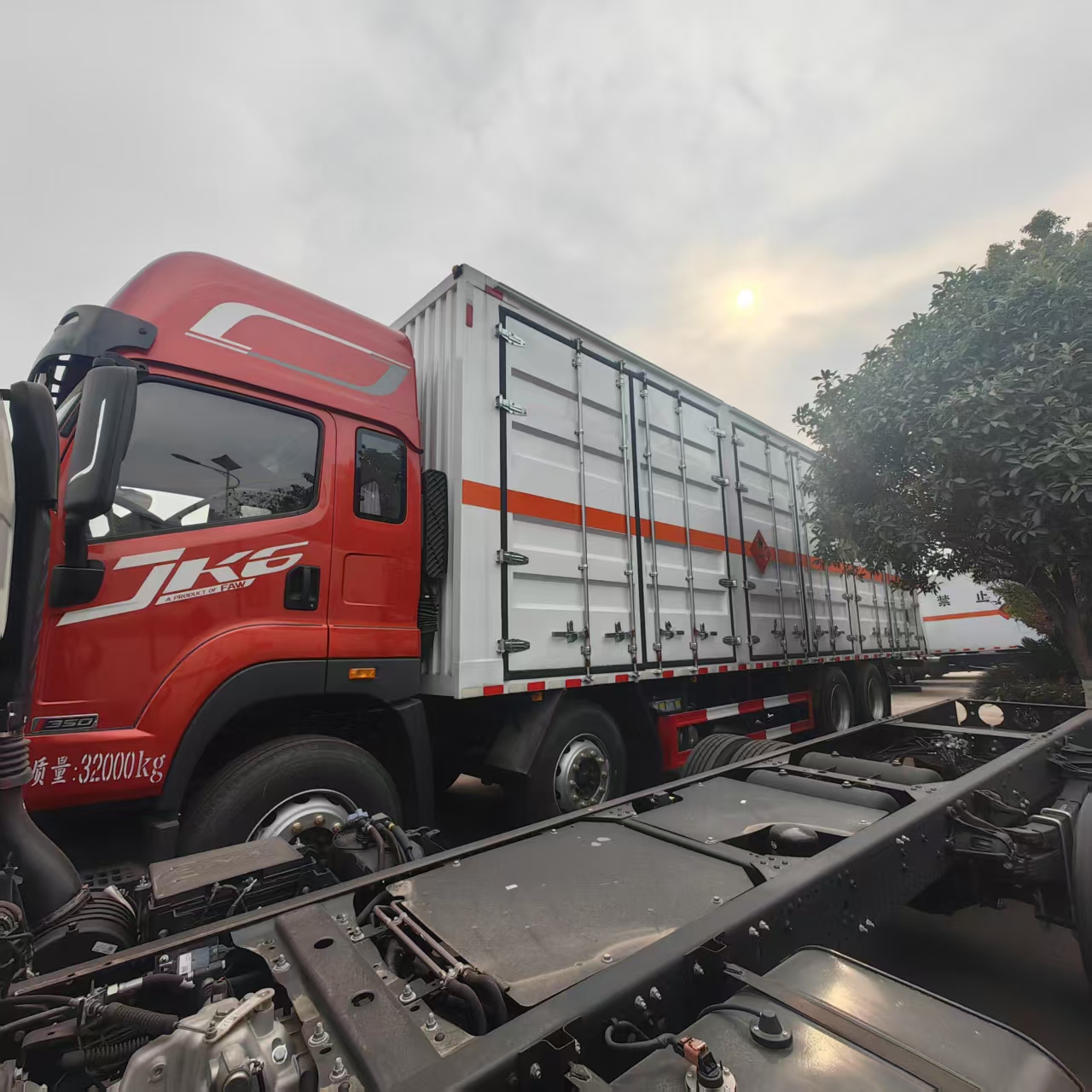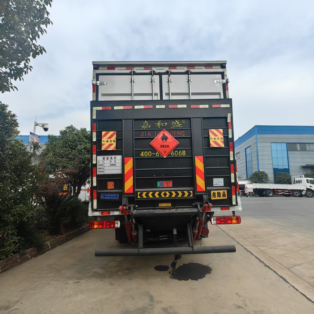 解放JK6前四后八國六危險品車箱體選用的是冷軋板折彎而成的瓦楞板,匹配的是左右開門結構。裝載噸位可達19噸,尾部可選裝液壓尾板,整車顏色可多選。整車全部采用的是烤漆板工藝,車輛經久耐用,重點是價格經濟實惠,讓您用車更無憂!