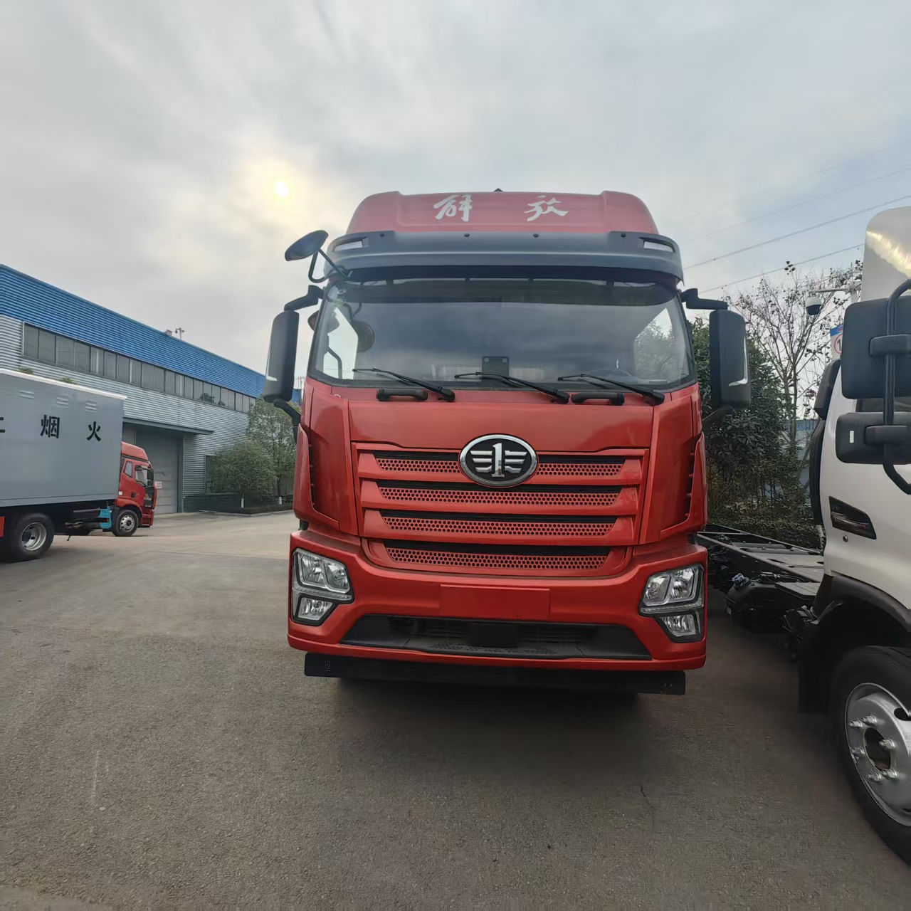 解放JK6前四后八國六危險品車選用的是新款駕駛室,JK6的外觀,選用的是大柴350馬力發動機,匹配的是一汽十檔變速箱,435沖焊橋,295真空胎,空氣彈簧座椅。400L鋁合金油箱。帶中間座椅,4氣囊,帶國產ECAS,400L鋁油箱,帶進口EBS/ESC/FCW/LDWS