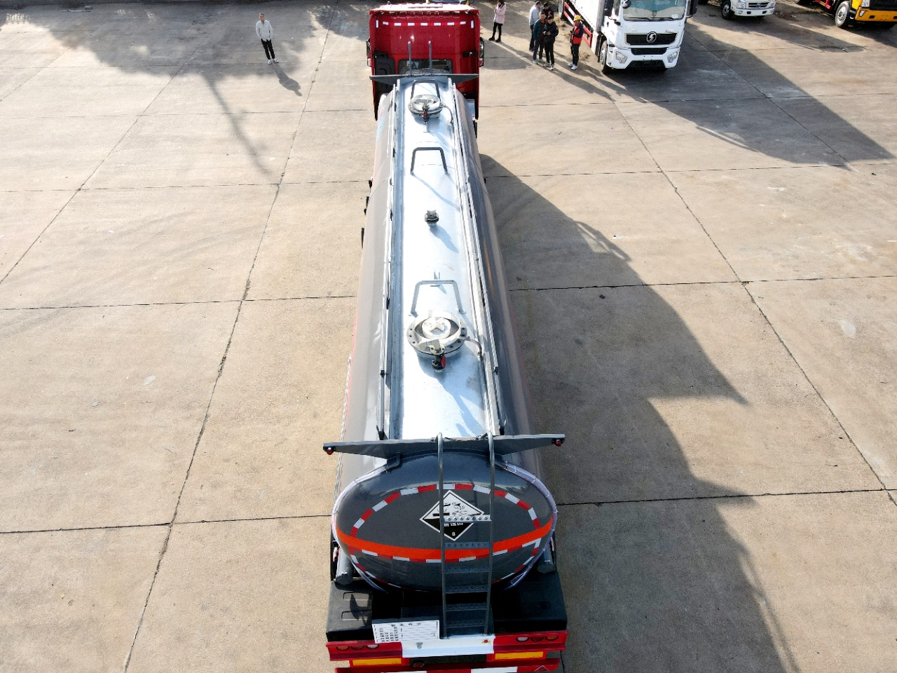 油漆:灰色防腐漆,貼反光帶,反光條,符合雜項(xiàng)罐式車要求外觀。配置聲光報(bào)警裝置、排氣管前置、前盤后鼓剎車系統(tǒng),滿足防爆及緊急制動(dòng)需求。采用空氣懸掛、大容量油罐設(shè)計(jì),適應(yīng)長途或短途運(yùn)輸需求