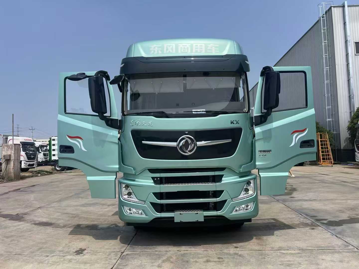 東風天龍旗艦王者國六9米6冷藏車選用的是蒼龍青顏色天龍旗艦王者KX冷藏車底盤,整車型號:DFH5310XLCCX2,發動機DDi13E520-60馬力、排量13L、變速箱DT1425 、前后橋5T/10T(DF400)、軸距2050+4600+1350、板簧3/3/10、車架300×80×8、油箱鋁800L+200L、輪胎12R22.5 18PR、360KW發動機制動、全車免維護、速比:可選:2.69/3.42/3.64 、2人座椅、雙側大儲物盒,內飾儲物空間多達25處總容積1024L,超寬臥鋪,12.3寸全液晶儀表分辨率1920*720,飛訊語音控制,百度聯合導航,110A發電機,180Ah蓄電池,智能座艙。主副油箱轉換開關(可加注不同型號燃油)、鋁合金儲氣筒。
