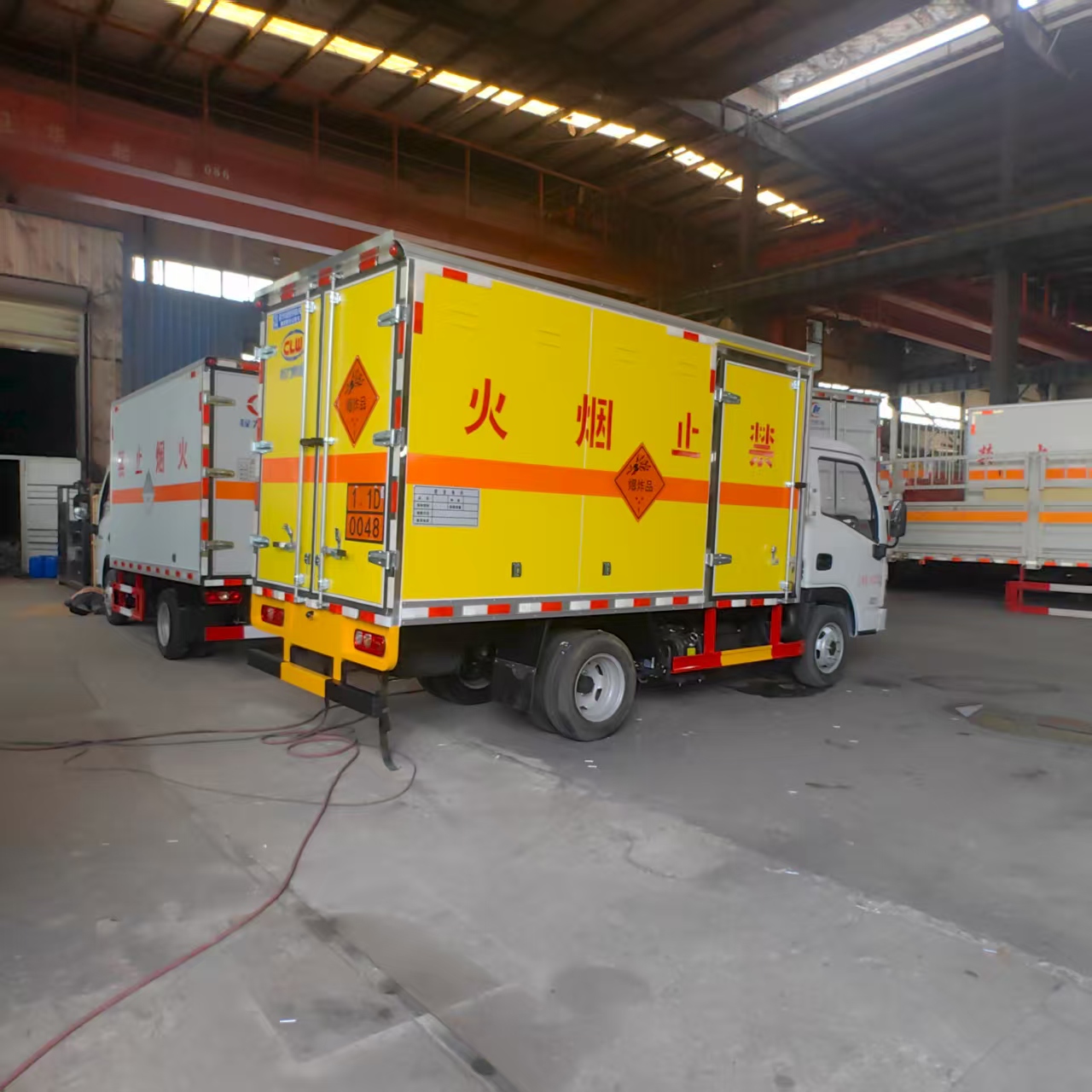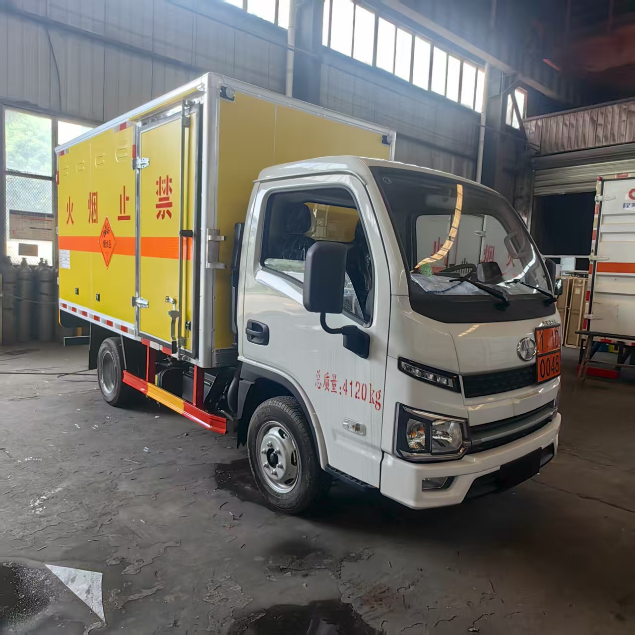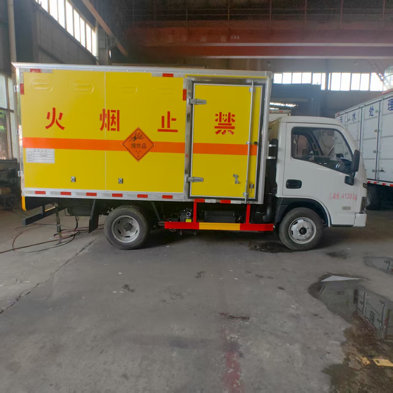 躍進S80國六帶隔倉爆破車匹配的是躍進危化品專用底盤,搭載先進柴油動力系統(tǒng),輸出強勁且穩(wěn)定。無論是崎嶇山路、顛簸礦區(qū),還是城市復雜道路,都能輕松應(yīng)對,高效完成運輸任務(wù)。柴油發(fā)動機具備出色的扭矩表現(xiàn),爬坡、載重時動力充沛,保障運輸流程順暢,助力工程進度推進。 廂體嚴格遵循爆破器材運輸規(guī)范打造,采用防火、防盜、防靜電材料與工藝。防火性能可有效阻隔外部火源,降低安全隱患;防盜結(jié)構(gòu)堅實,防止爆破物資被盜取;防靜電設(shè)計避免靜電積累引發(fā)危險,從源頭守護運輸安全。廂體表面清晰噴涂 “禁止煙火” 警示標識,時刻提醒周邊人員注意安全,強化運輸環(huán)境安全性。