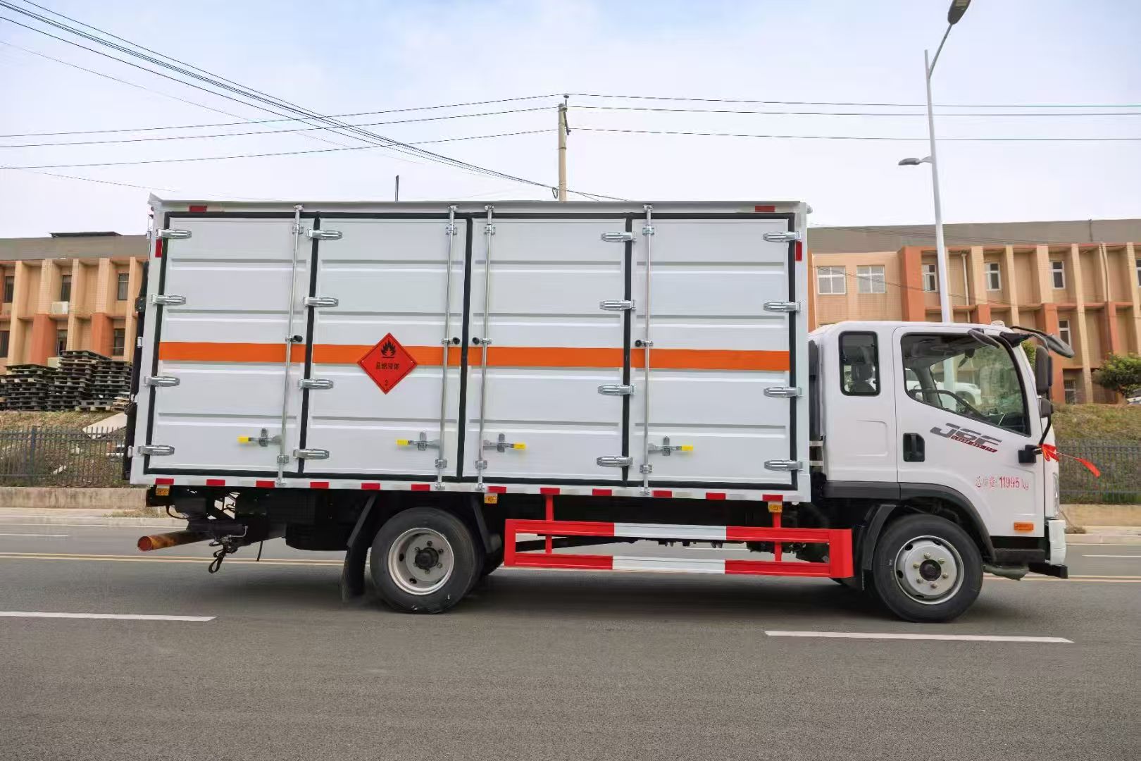 解放J6F帶全開門易燃液體廂式車采用的是危險品專用底盤,J6F(2010)單排駕駛室,大柴CA4DD2-18E6,陜齒8JS75C,325GH后橋(6噸后橋,16L尿素箱,帶國產(chǎn)ABS,液晶儀表,電加熱后視鏡,150L鋁合金油箱,板簧7/10+4,高架箱,空調(diào)+電動門窗+中控鎖,前后橫向穩(wěn)定桿,后處理器前置+排氣火花熄滅器+前盤后鼓制動器+限速79KM/H+前碰撞預(yù)警+車道偏離輔助預(yù)警,北斗+GPRS行車記錄儀,帶靜電拖地帶,爆胎應(yīng)急安全裝置,危化專用底盤。整車尺寸 7100×2550×3270(mm),廂體尺寸 5200X2400x2100。額載噸位7噸,裝貨多不容易超載。采用瓦楞板箱體,底板為4mm花紋板上鋪防靜電膠皮,廂體右側(cè)全部開門。底部橫梁加密25左右,門框帶防盜報警器,頂部帶煙霧報警器。其他按標(biāo)配制作,配備隨車工具。