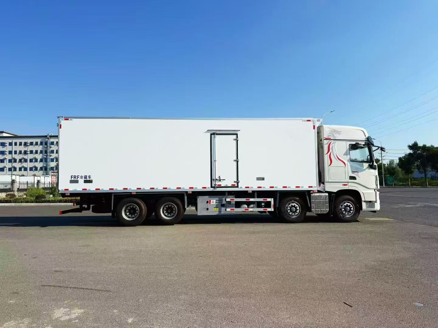 東風(fēng)天龍KX國六9米6冷藏車箱體采用玻璃鋼、彩鋼板、鋁合金板或不銹鋼板等材質(zhì)。其中,玻璃鋼材質(zhì)具有良好的隔熱性、硬度、抗氧化性和耐腐蝕性,表面光滑,易于清潔;不銹鋼板則強度高、耐腐蝕、衛(wèi)生性能好,適用于運輸對衛(wèi)生要求較高的食品、藥品等貨物箱體外觀顏色多樣,常見的有白色、銀色等淺色系,這些顏色能夠反射陽光,減少熱量吸收,有助于保持箱體內(nèi)部的低溫環(huán)境。