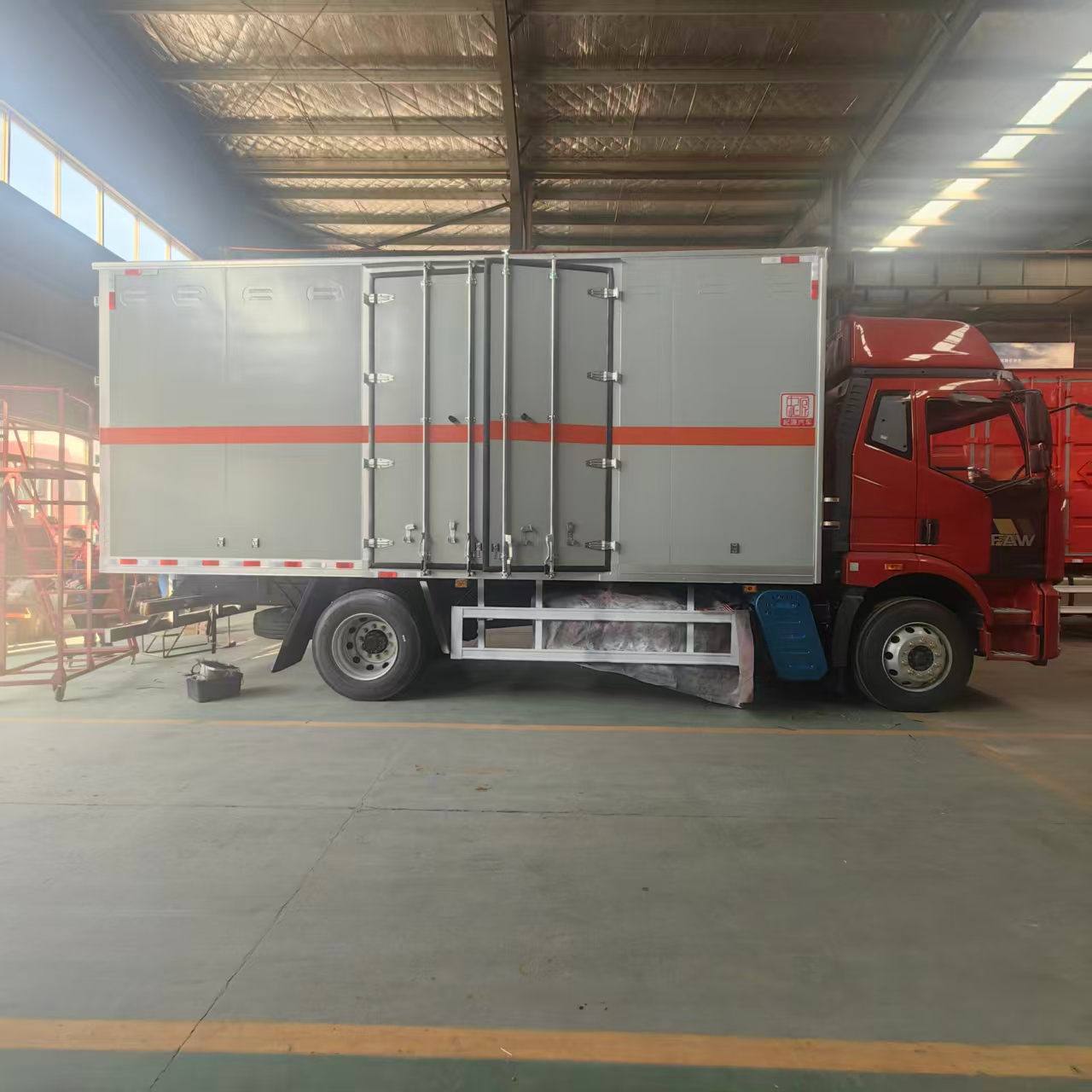 解放J6L灰色箱體爆破車是目前單橋車型中非常典型的代表,在市面上看到的長途運輸車,都是長春解放為主,性能穩定車輛配置更齊全。針對運輸要求,爆破的車廂可分為煙椛、民爆品、吙工品等類別,所以顏色區別會很大。采用的是大柴240馬力或者大柴220馬力發動機,針對長途運輸車輛設計的是高頂雙臥,臥鋪寬駕駛員休息更好。紅色的駕駛室匹配灰色的箱體,外觀看起來更大氣。