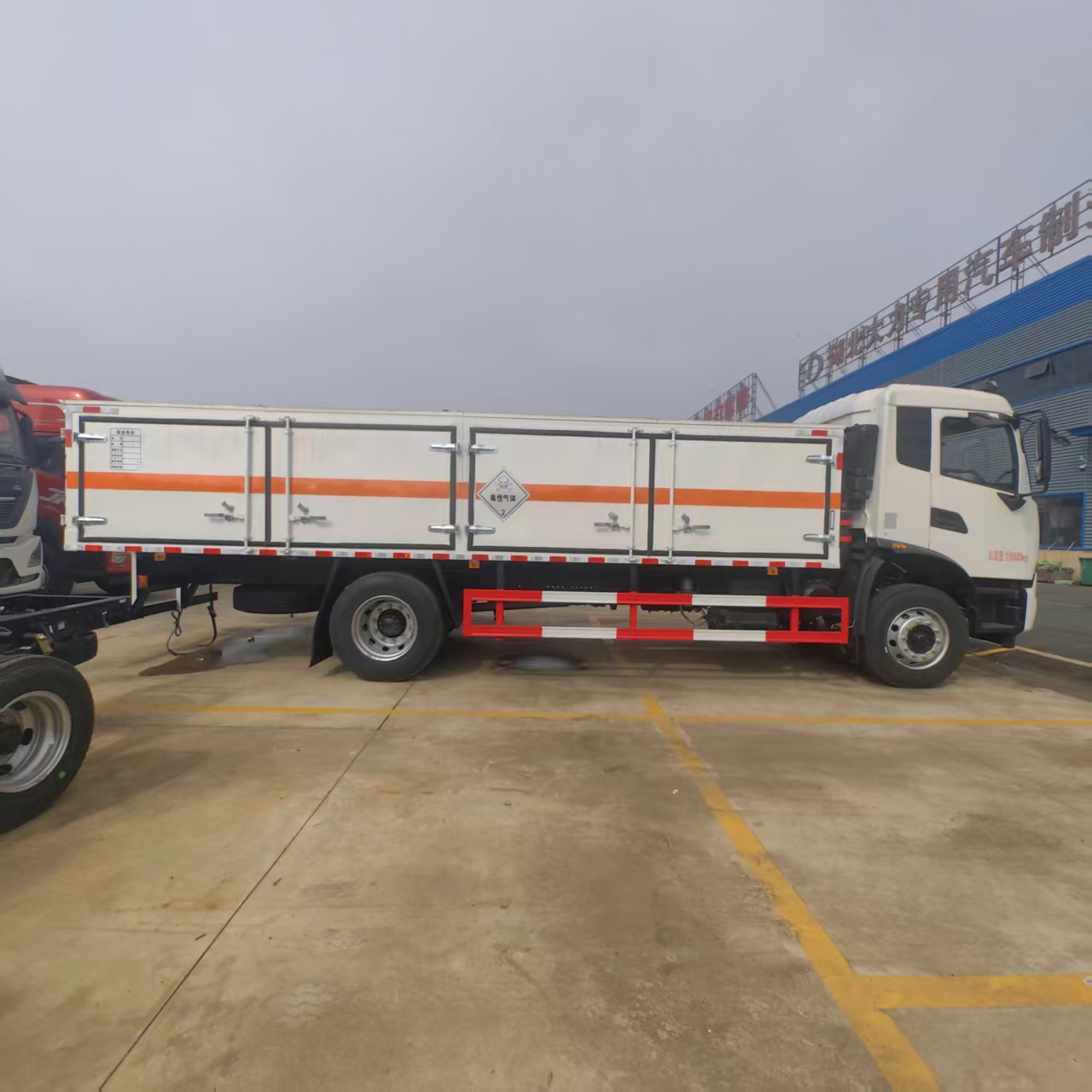 東風天錦國六毒性氣體廂式車選用的是康明斯210馬力發動機,可選高頂或者平頂駕駛室兩種規格,帶中控鎖、電動門窗、原廠空調,車廂采用優質Q235B冷軋鋼板定制,內外蒙皮厚度達1.5mm,中間填充阻燃保溫材料,整體焊接牢固,具有極強的抗沖擊、防腐蝕性能,有效阻隔外部沖擊對車廂內部的影響。車廂配備專用密封膠條和防水防雨結構,門框采用加強型設計,實現全域密封,從源頭杜絕氣體泄漏風險。東風天錦國六毒性氣體廂式車可適配氯氣、氨氣、硫化氫等多種毒性氣體的運輸需求,廣泛應用于化工、醫藥、冶金等行業的危化品運輸場景。